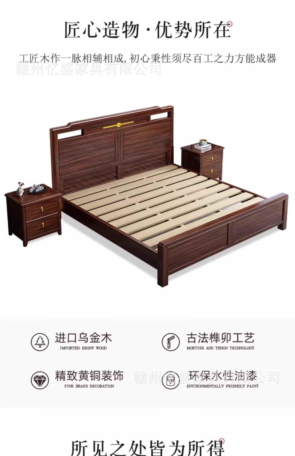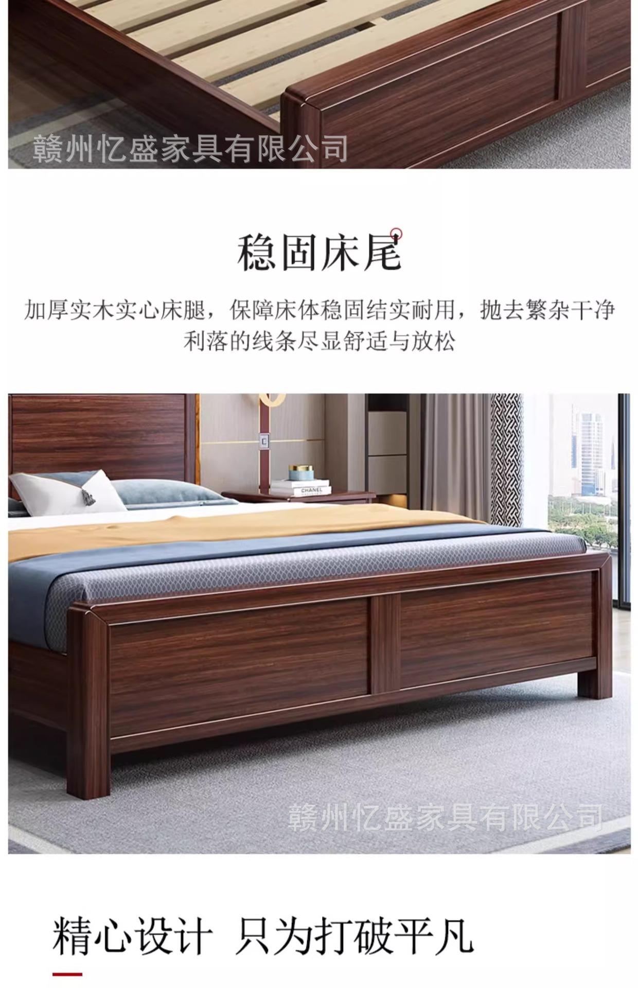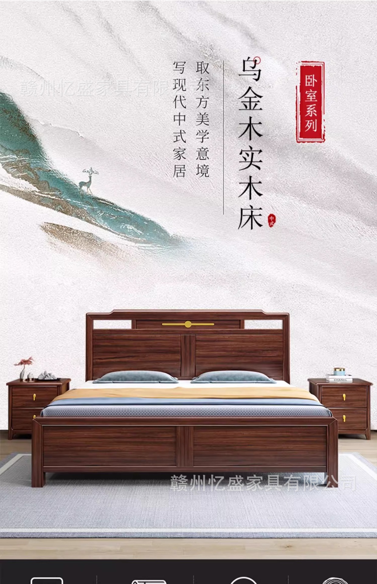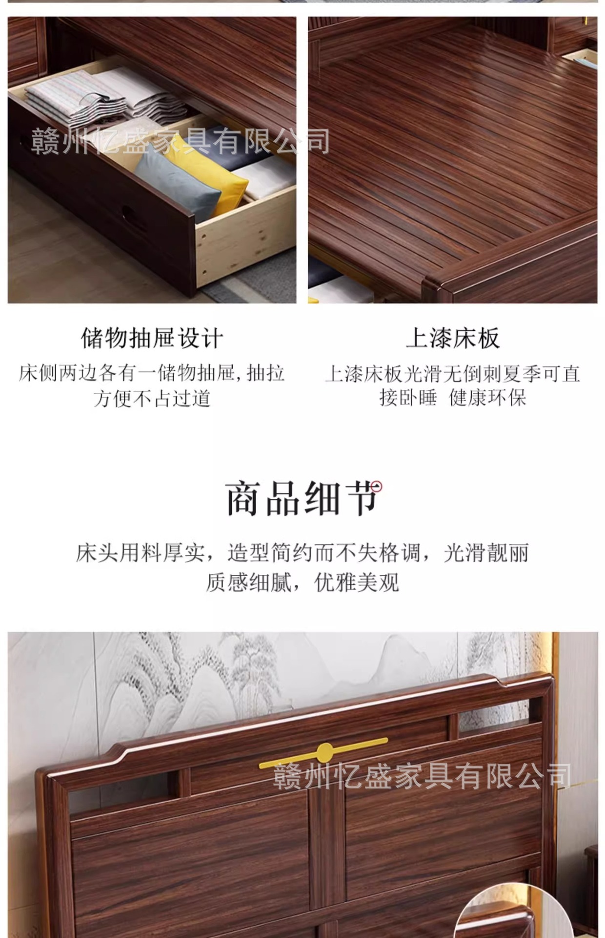새로운 중국 스타일의 검은 나무 원목 침대 1.8m 더블 침대 라이트 럭셔리 모던 심플 1.5m 마스터 침실 하이 박스 수납 침대스토어 가기