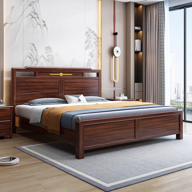 새로운 중국 스타일의 검은 나무 원목 침대 1.8m 더블 침대 라이트 럭셔리 모던 심플 1.5m 마스터 침실 하이 박스 수납 침대