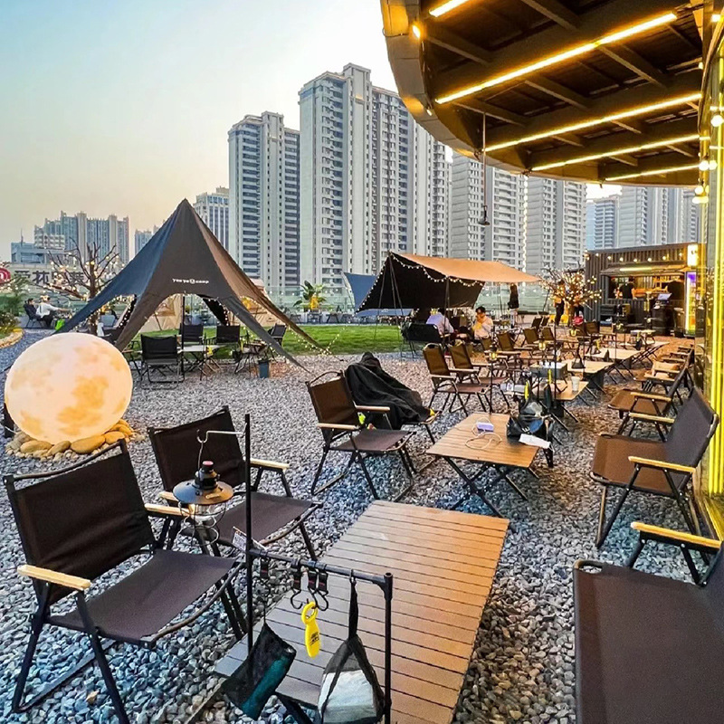 인터넷 연예인 캠핑 스타일 바 테이블과 의자 조합 클리어 바 비스트로 바베큐 카페 밀크티 숍 야외 레저 상업용