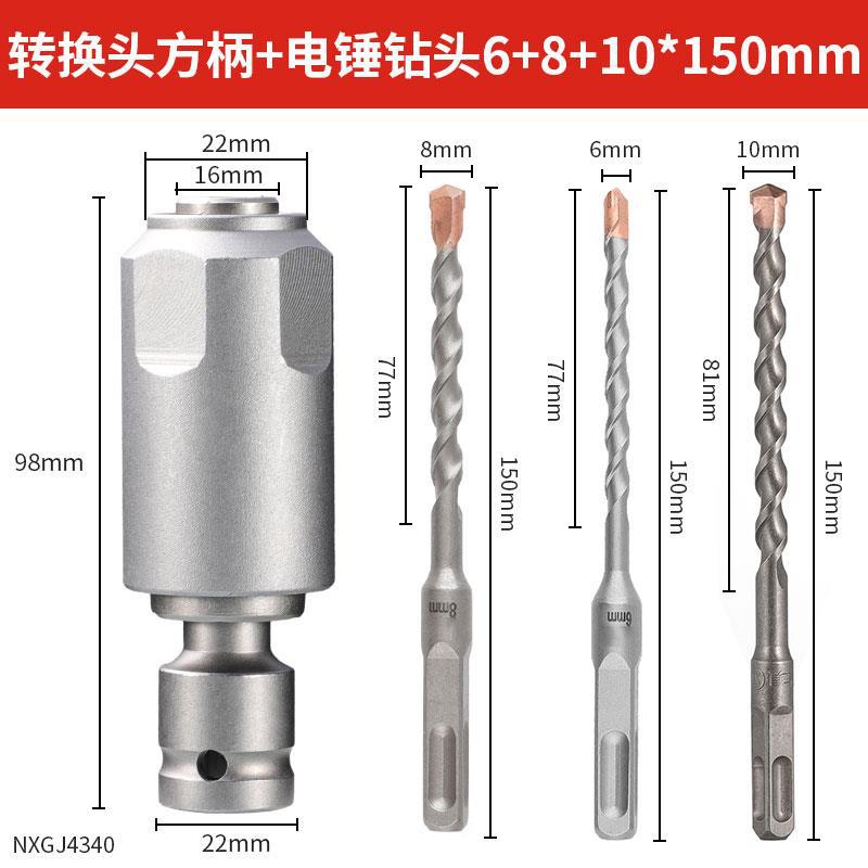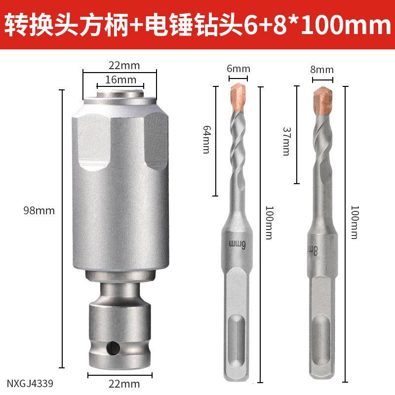 • 고급스러운 새 전기 렌치 변환 헤드 [사각형 핸들] + 전기 해머 드릴 비트 6+8*100MM
