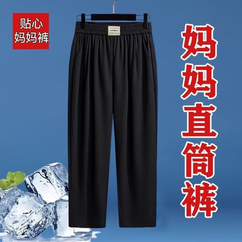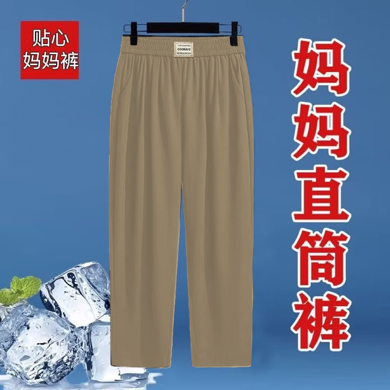 중노년 엄마 아이스 실크 팬츠 여름 튜브 팬츠 얇은 루즈 하이웨이스트 스트레이트 스트레치 9부 팬츠 플러스 사이즈 여성 팬츠스토어 가기