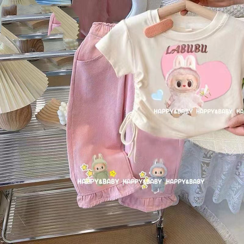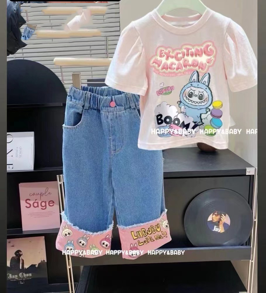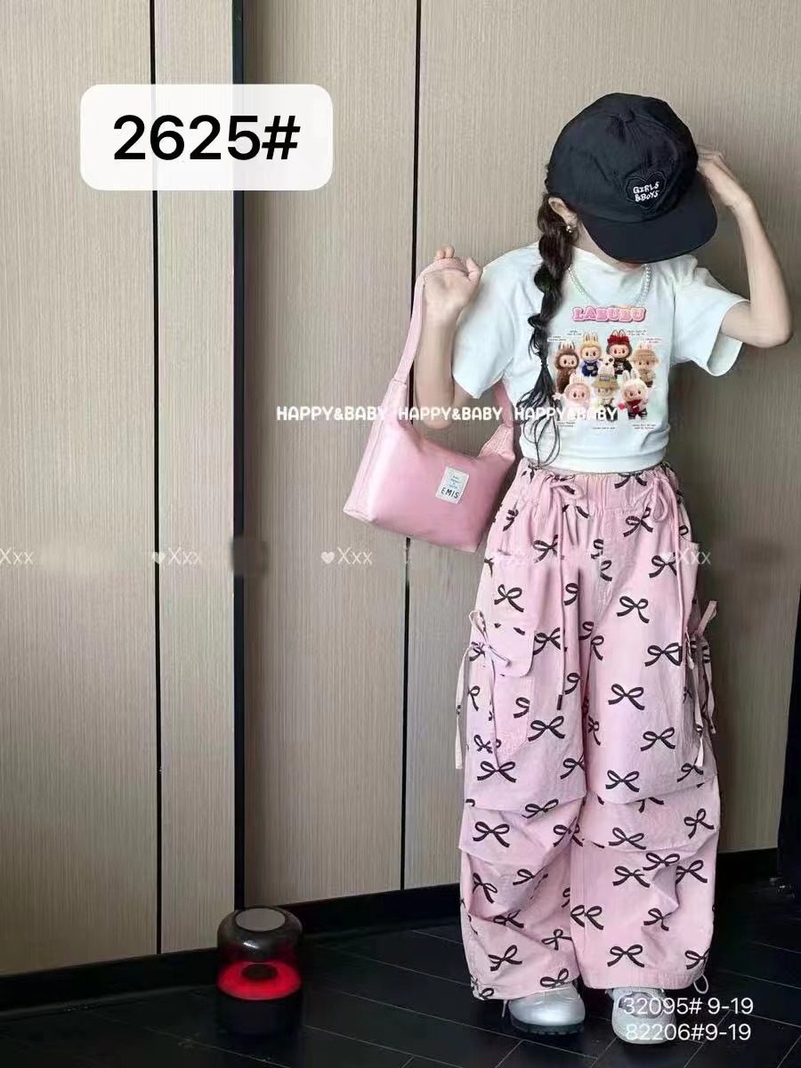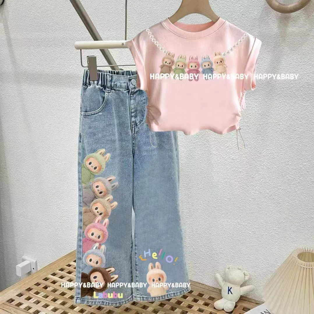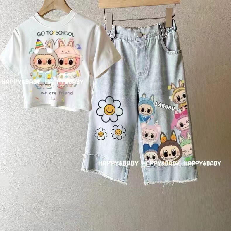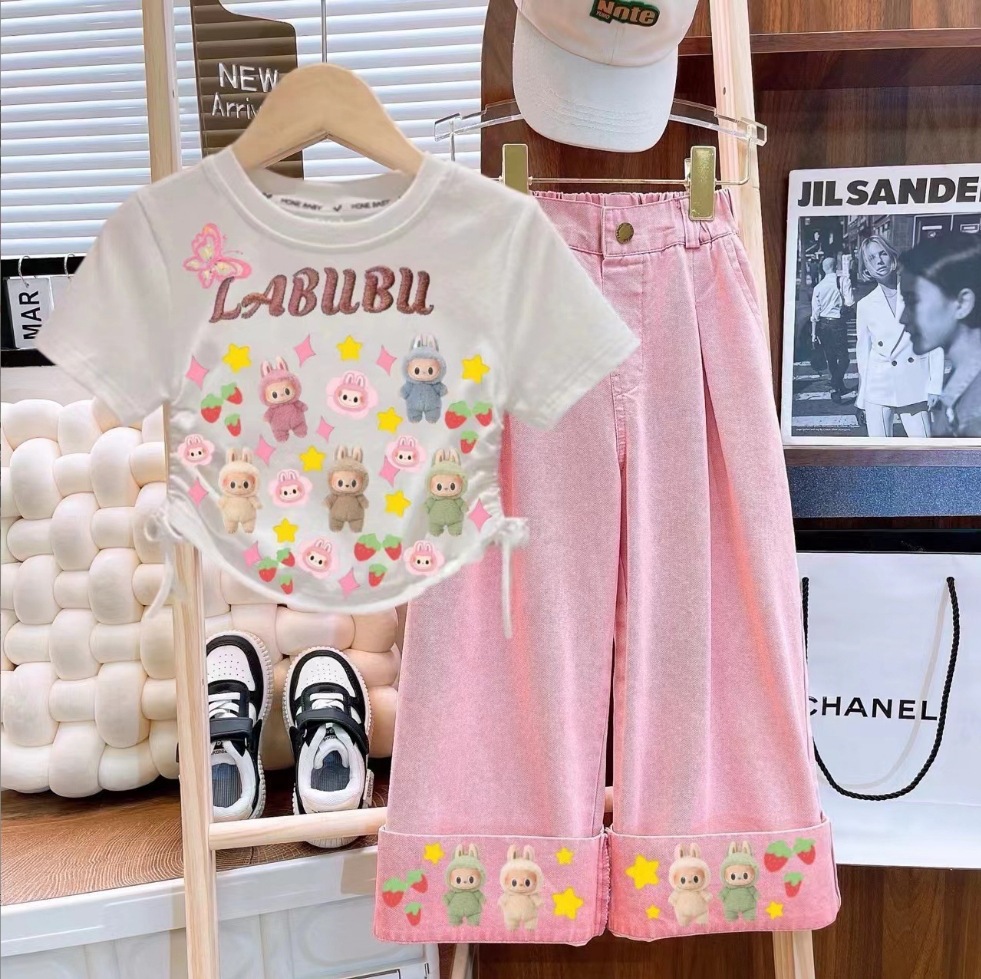 국경 간 대외 무역 소녀 반팔 청바지 2025 새로운 스타일 아동용 와이드 팬츠 중대형 아동용 바지 스트레이트 팬츠