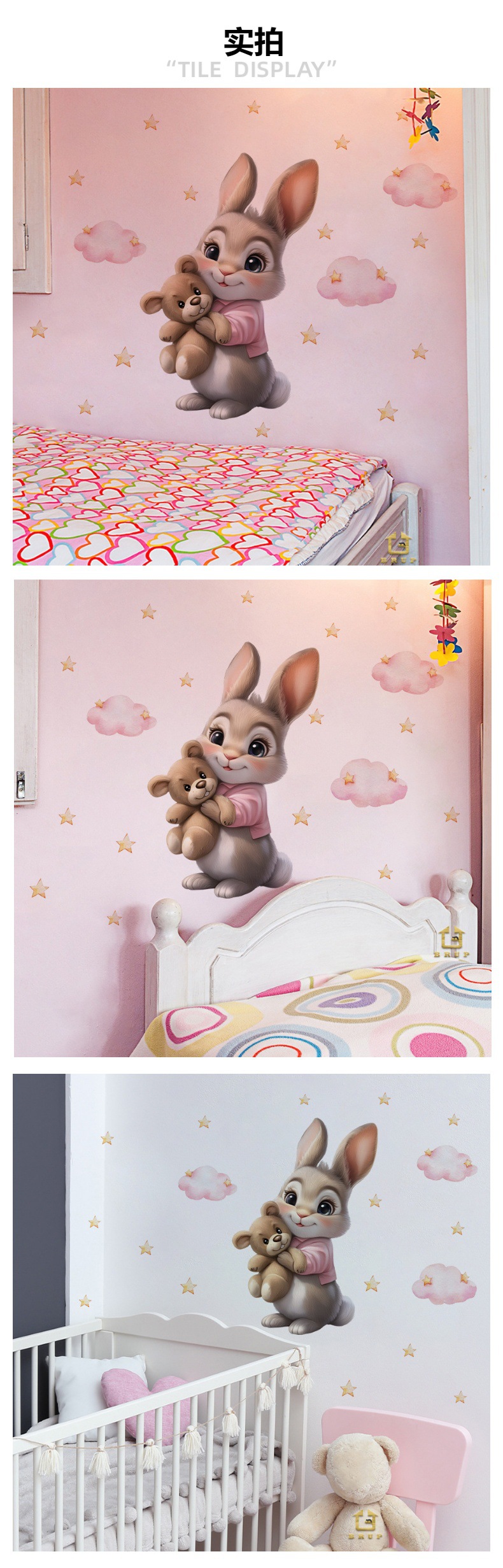 HS3910E 만화 애니메이션 테디 베어 인형 토끼 자기 접착 침실 임대 집 홈 뷰티 데코 스티커스토어 가기