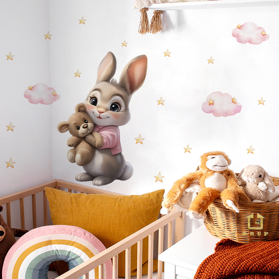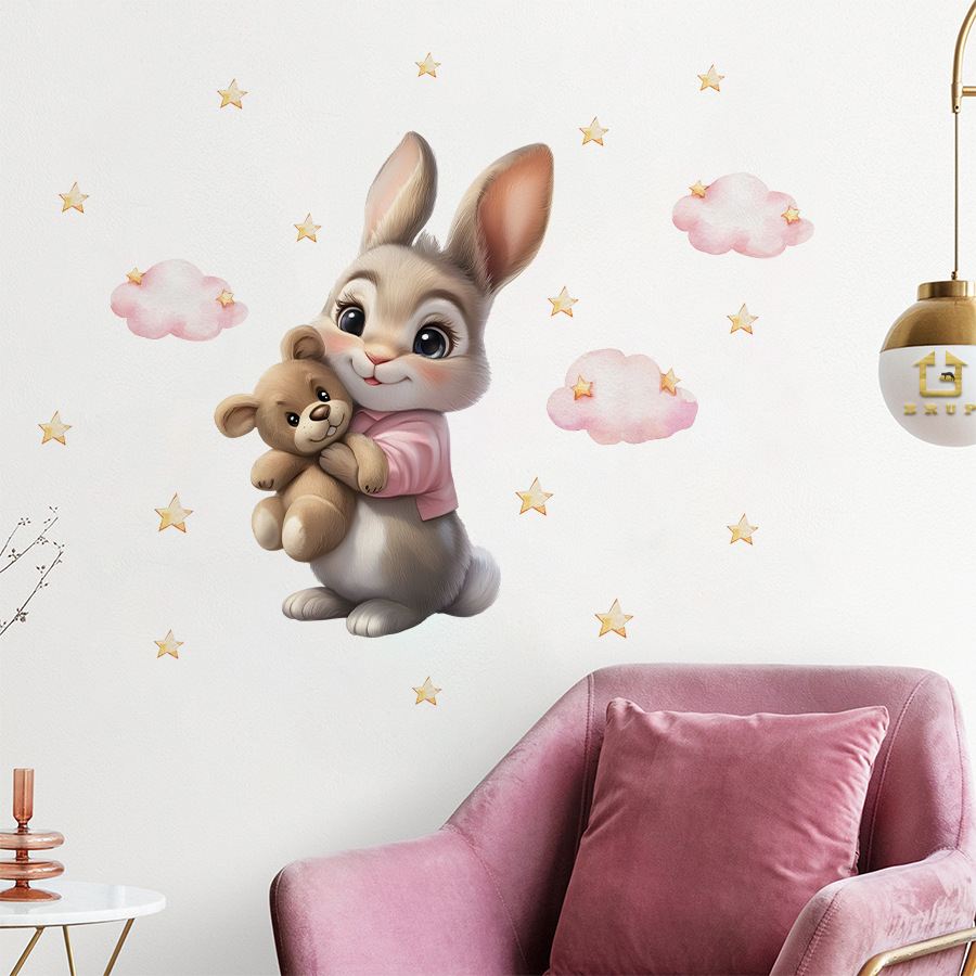 HS3910E 만화 애니메이션 테디 베어 인형 토끼 자기 접착 침실 임대 집 홈 뷰티 데코 스티커