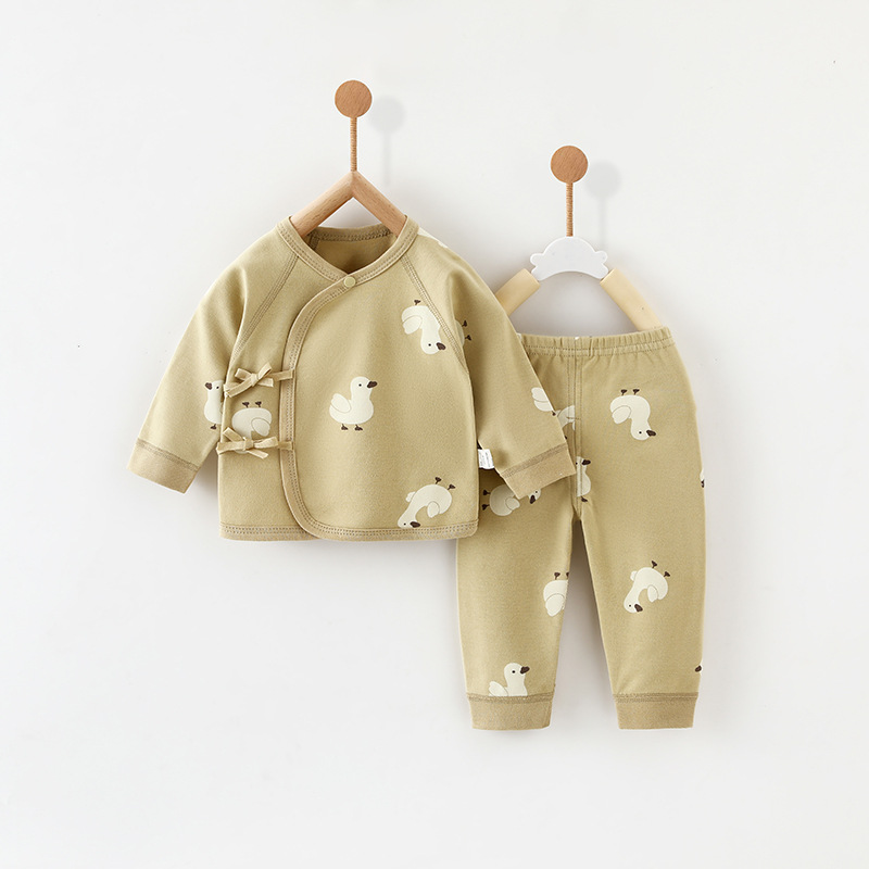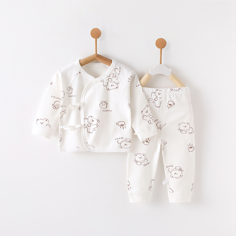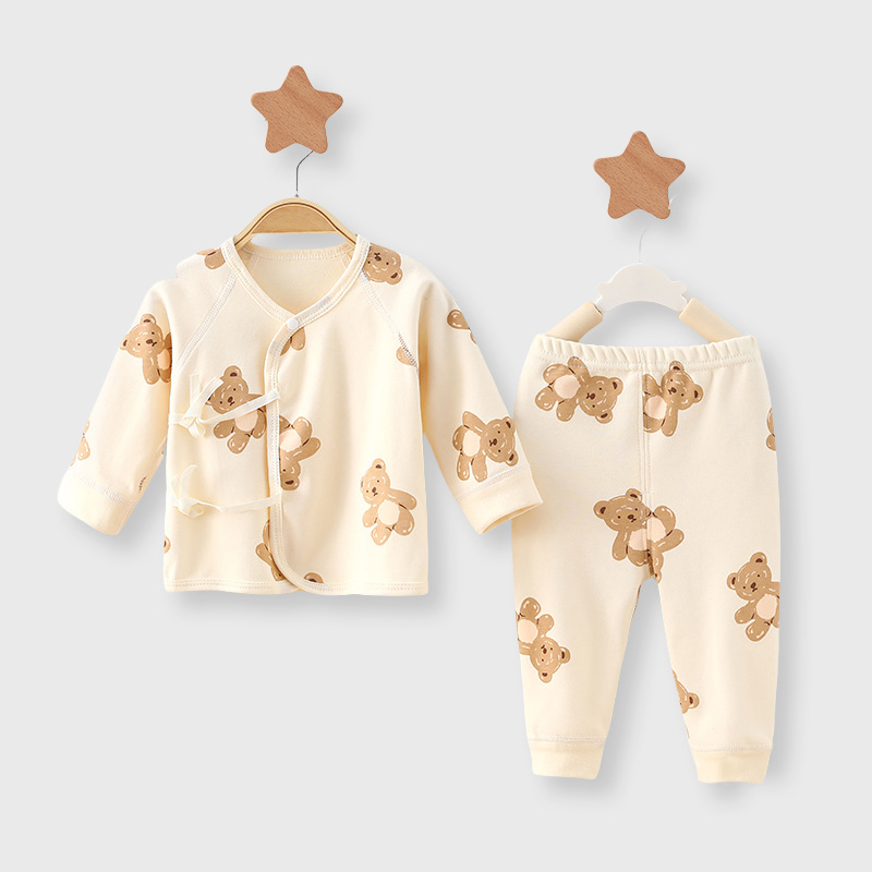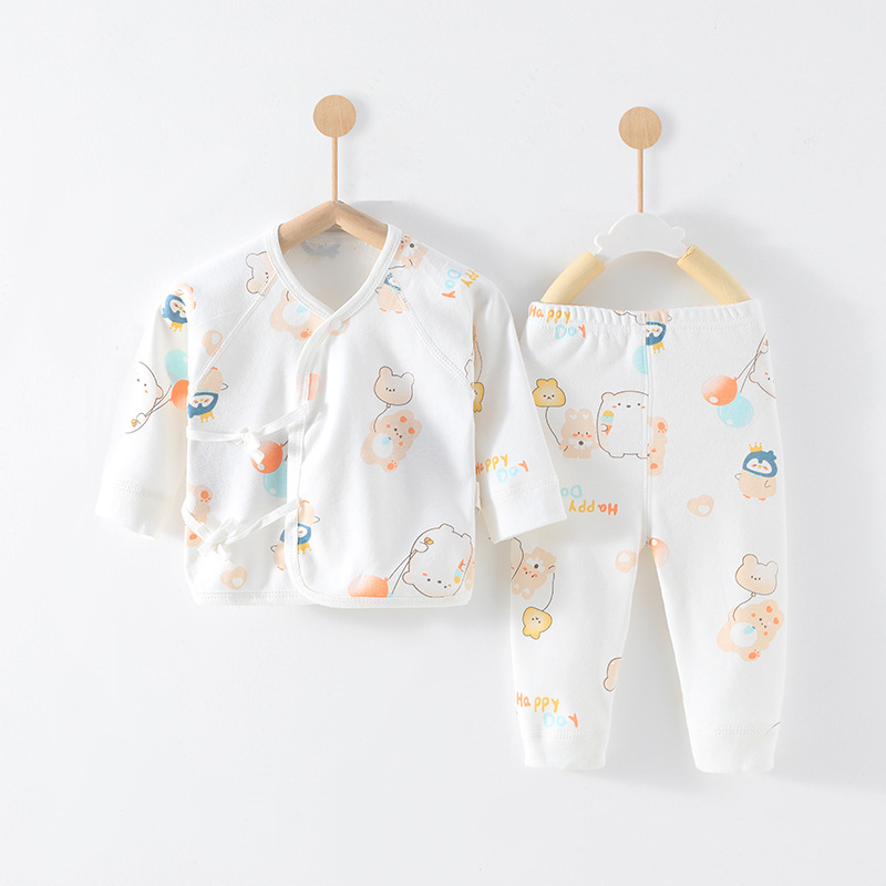 아기 아기 세트 봄과 가을 새로운 순수 면화 유형 A 투피스 신생아 세트 남성과 여성 아기 잠옷 도매스토어 가기