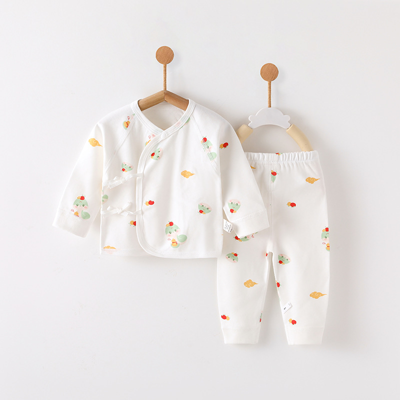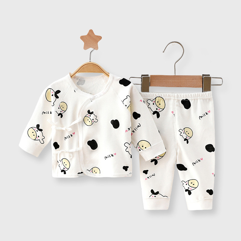 아기 아기 세트 봄과 가을 새로운 순수 면화 유형 A 투피스 신생아 세트 남성과 여성 아기 잠옷 도매