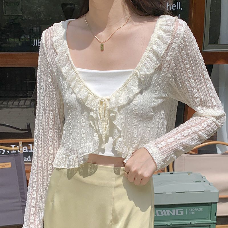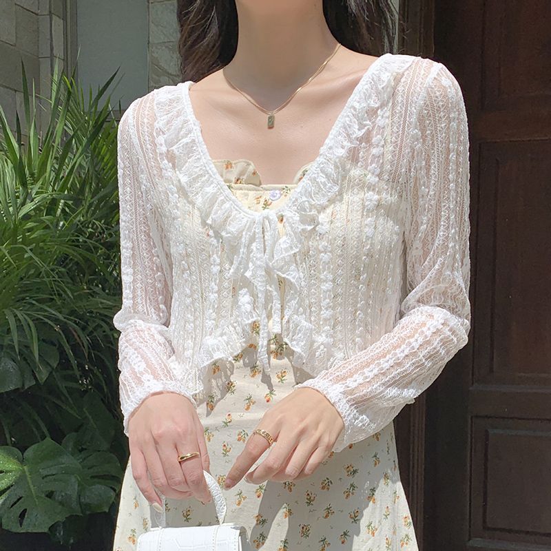 2025 신상 쉬폰 셔츠 여성 여름 얇은 짧은 탑 가디건 재킷 다용도 레이스 숄스토어 가기