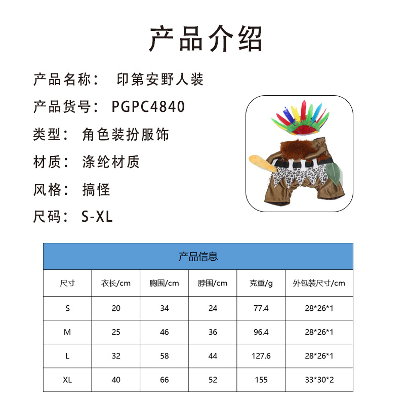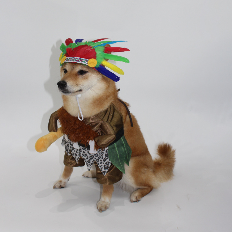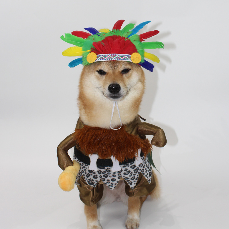 애완 동물 캐릭터 드레스업 의상, 개 할로윈 인디언 야만인 드레스업 스탠딩 의상, 국경 간 유통 지원스토어 가기