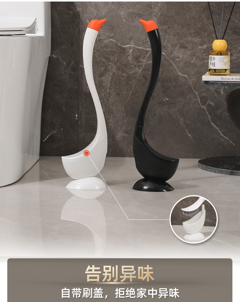 4. 创意天鹅造型马桶刷 家用卫生间免打孔 硅胶刷头可拆洗清洁刷