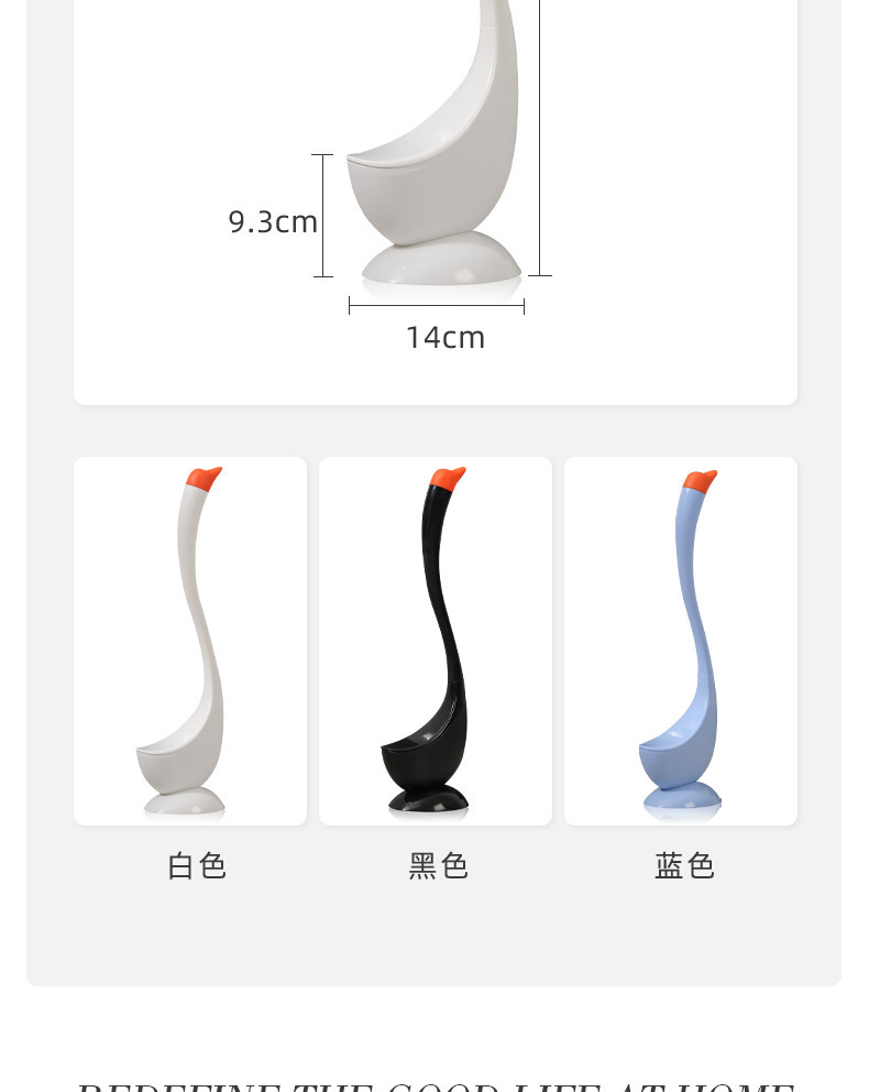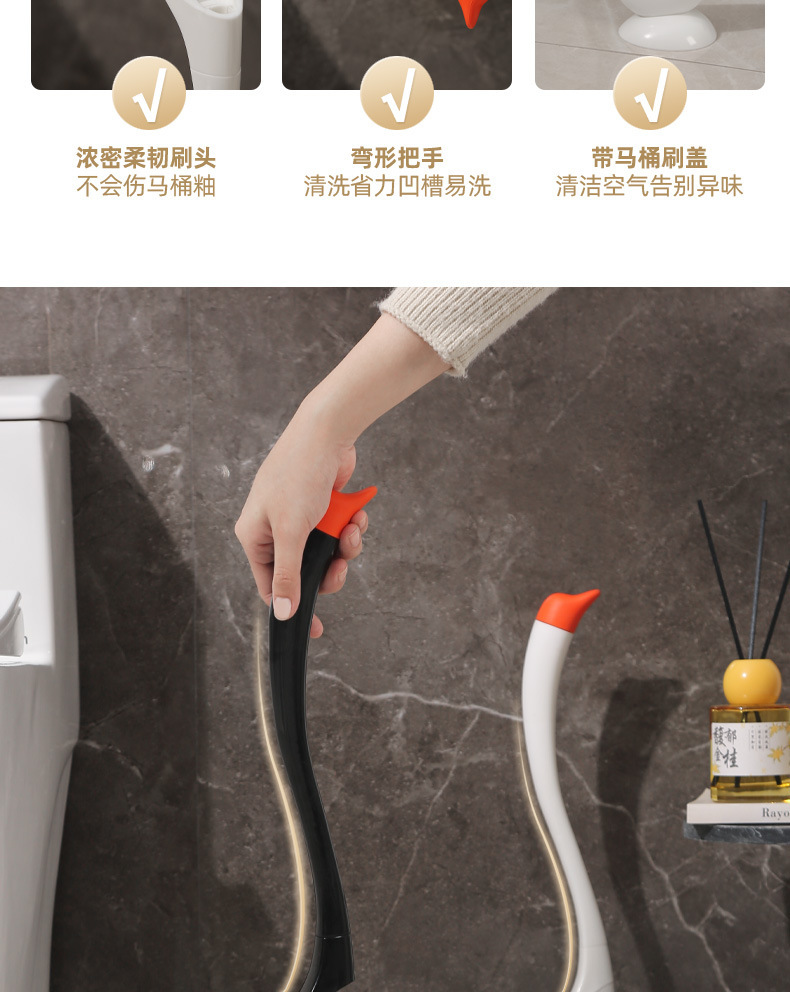2. 抑菌硅胶刷头天鹅马桶刷 带底座可沥水 浴室厕所清洁神器高颜值款