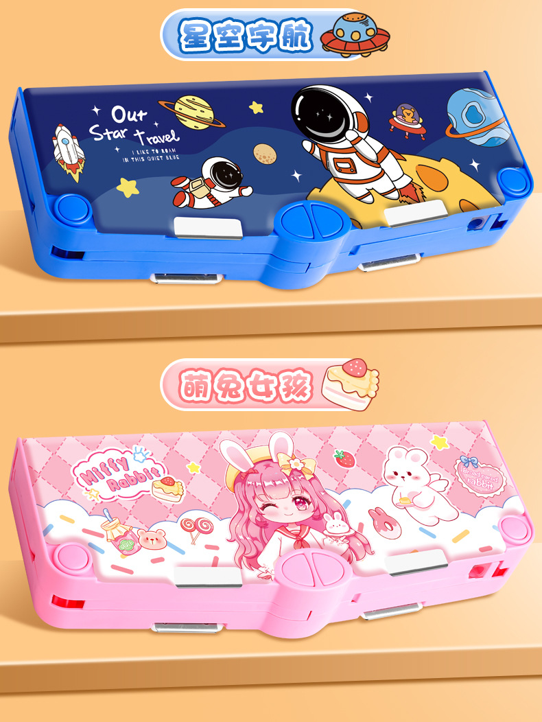 만화 다기능 더블 레이어 기계 문구 상자, 귀엽고 멋진 어린이 필통, 초등학생 대용량 필통