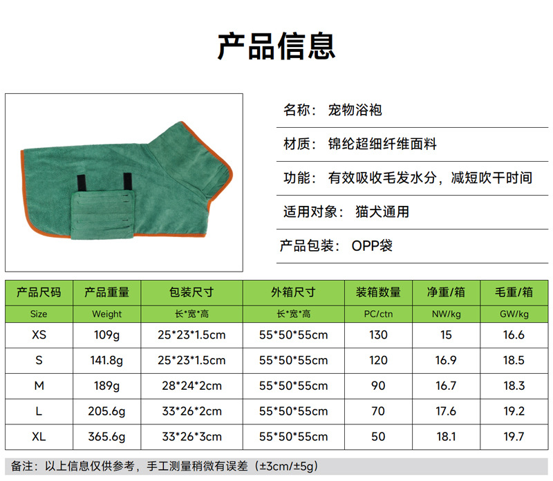 중소형견용 크로스보더 애완동물 목욕타월, 목욕가운, 부드럽고 속건성, 흘리지 않는 생활용품, 흡수타월