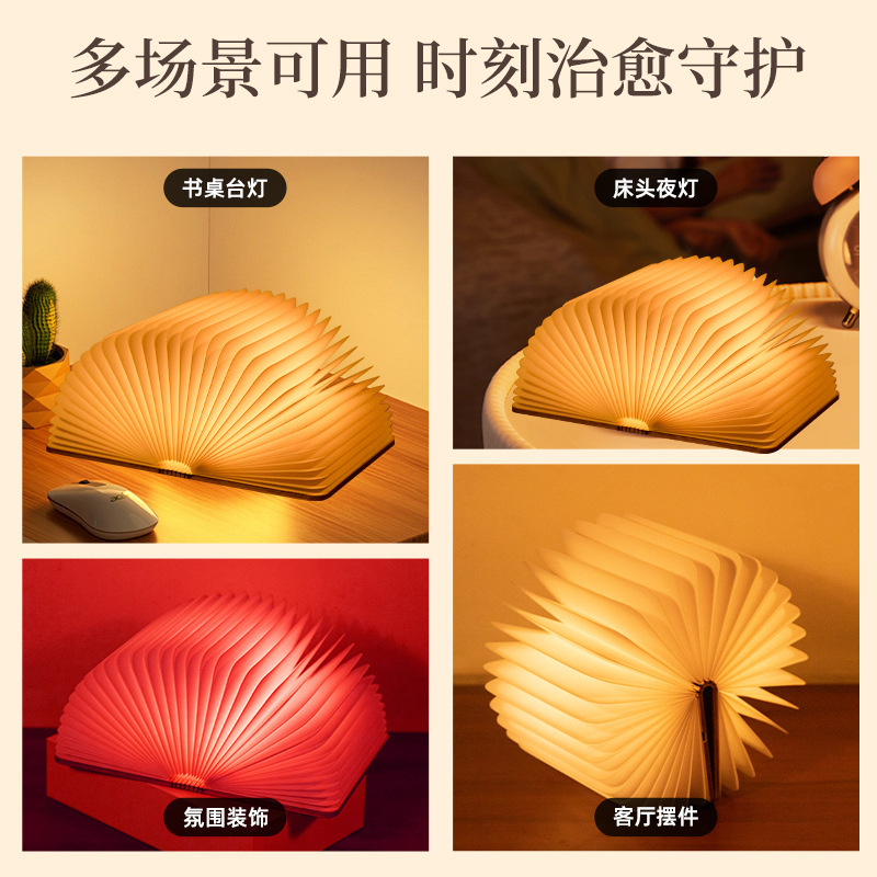 LED 나무 7 색 접이식 책 램프 분위기 램프 침실 따뜻한 창조적 인 야간 조명 생일 선물 축하 기념일