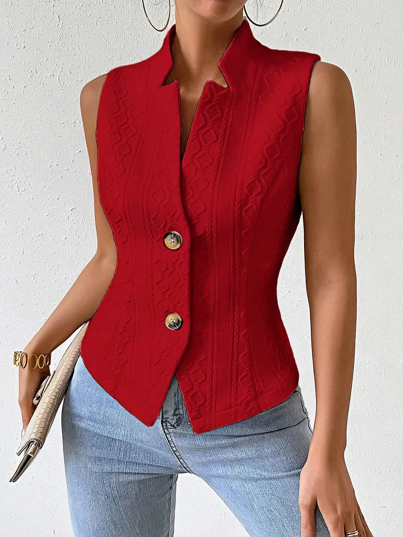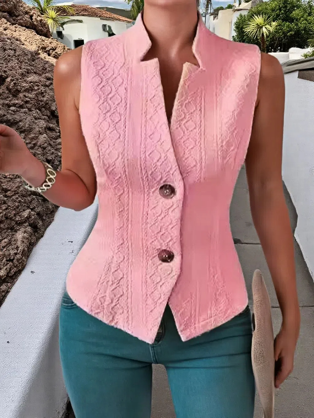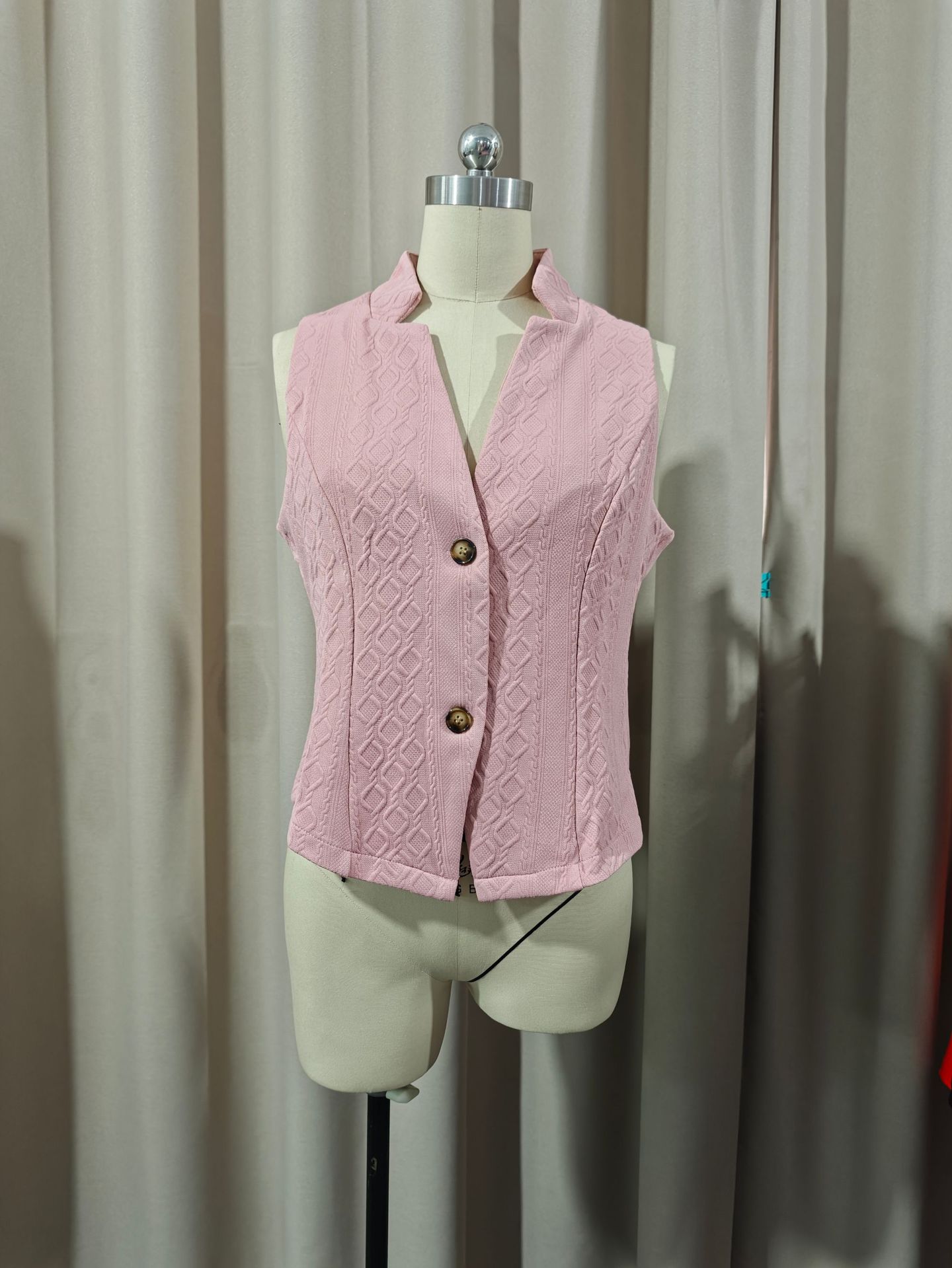 2025 유럽과 미국 아마존 국경 간 여성 의류 새로운 통근 v 넥 버튼 민소매 조끼 조끼 코트 탑 여성