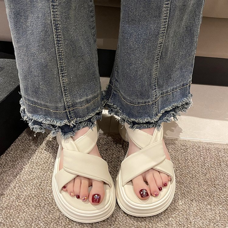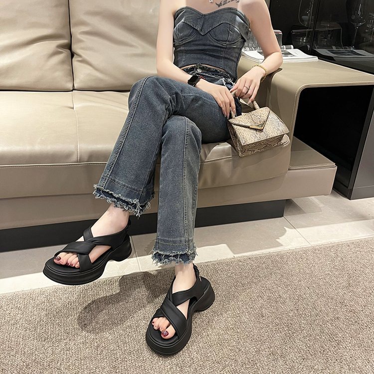 여성용 프렌치 샌들, 2025년 여름 신상 두꺼운 밑창 플랫폼 여성화, 작은 사람들을 위한 키가 큰 로마 비치 슈즈
