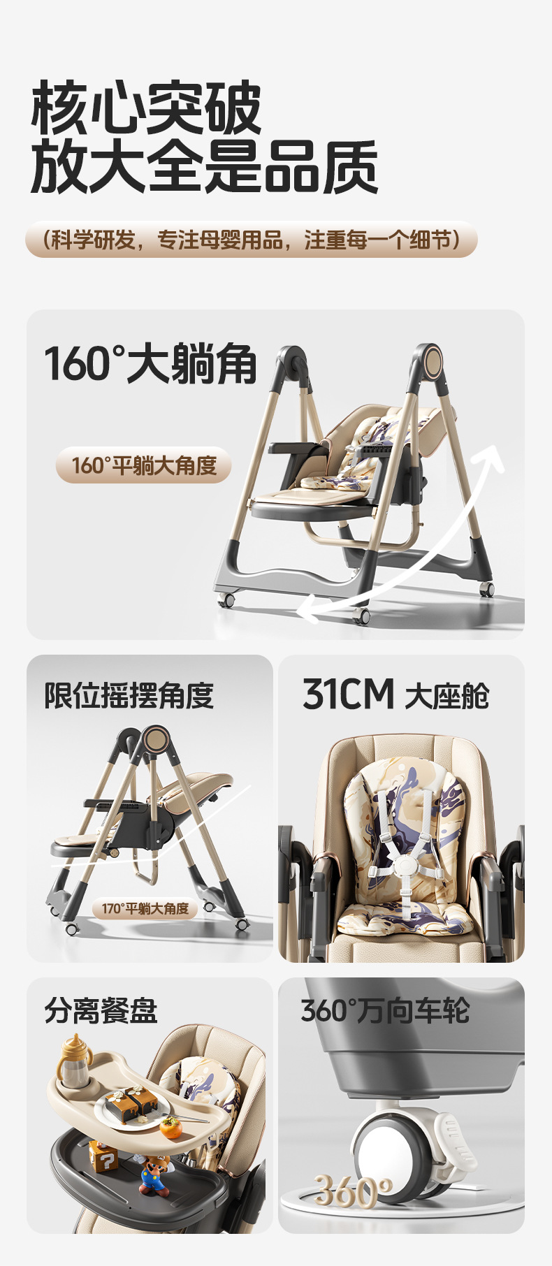 • 탑카키 컬러 + 설치 불필요 + 터치스크린 조기 교육 음악 + 유니버설 휠 + 두꺼운 면 패드 + 조절 가능 + 다이닝 체어 흔들의자 투인원