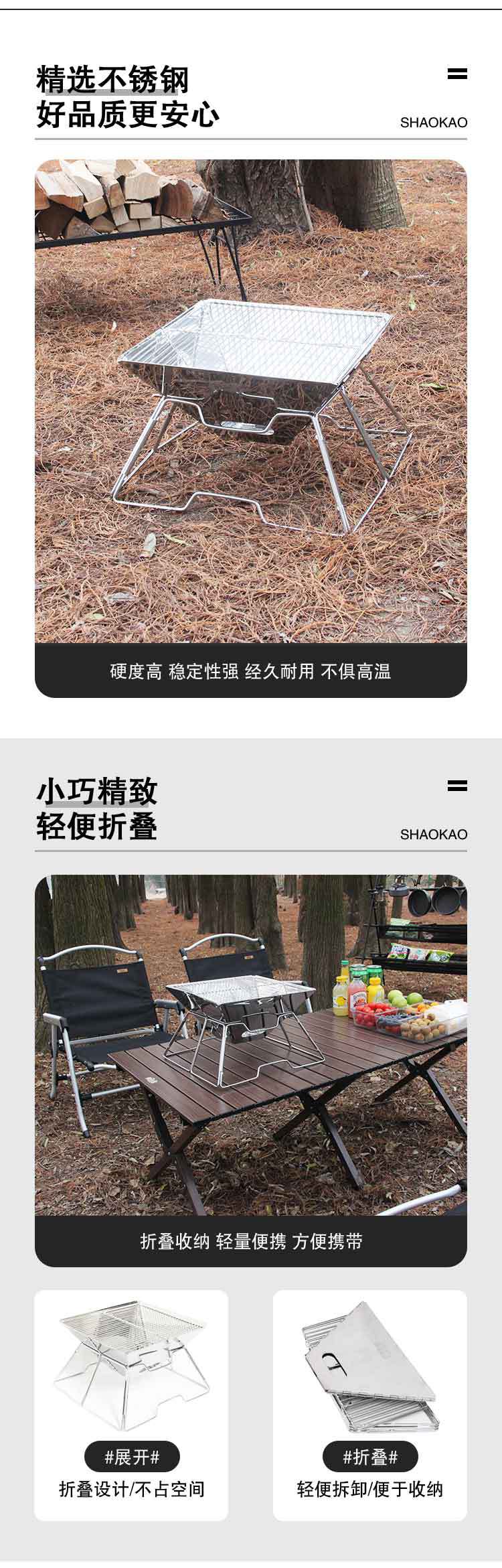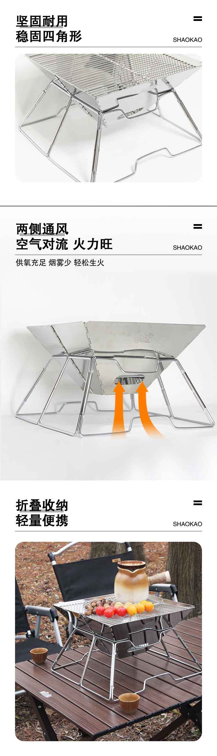 Donkey Expert 야외 캠핑 접이식 바베큐 스테인레스 스틸 목재 및 숯 겸용 스토브 휴대용 그릴 화덕