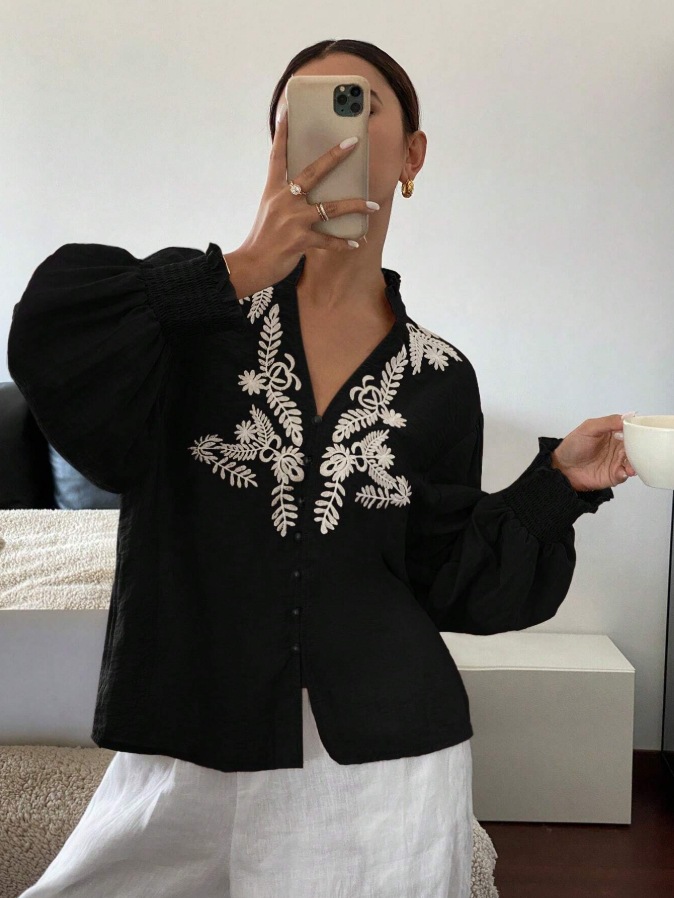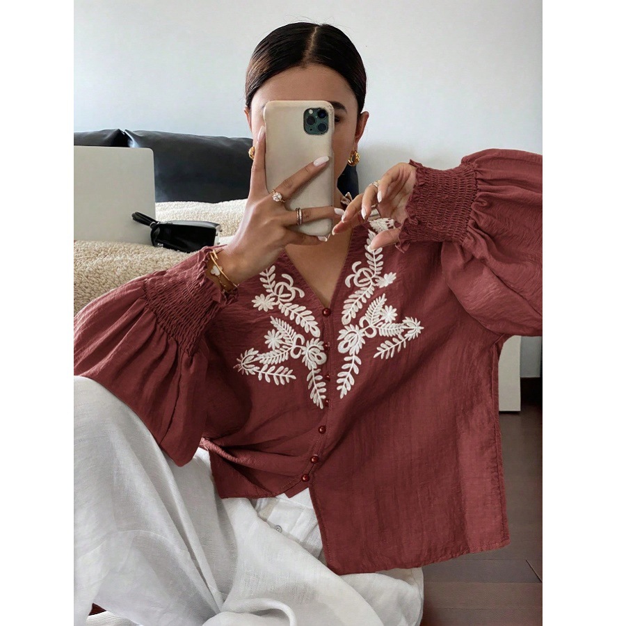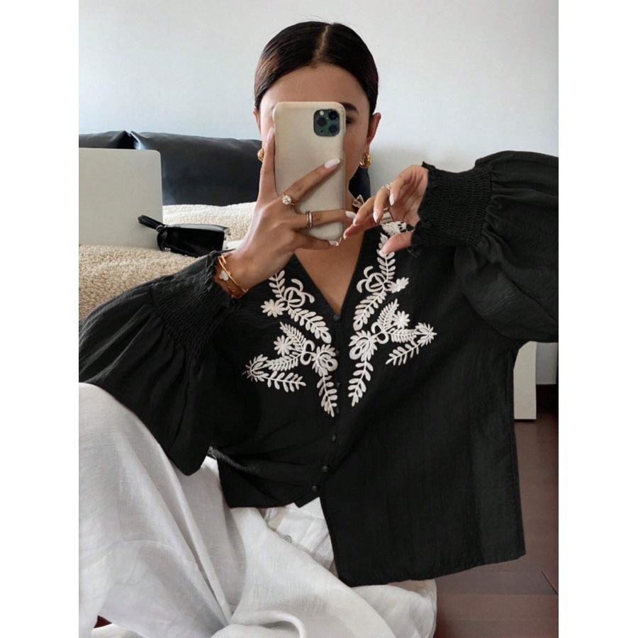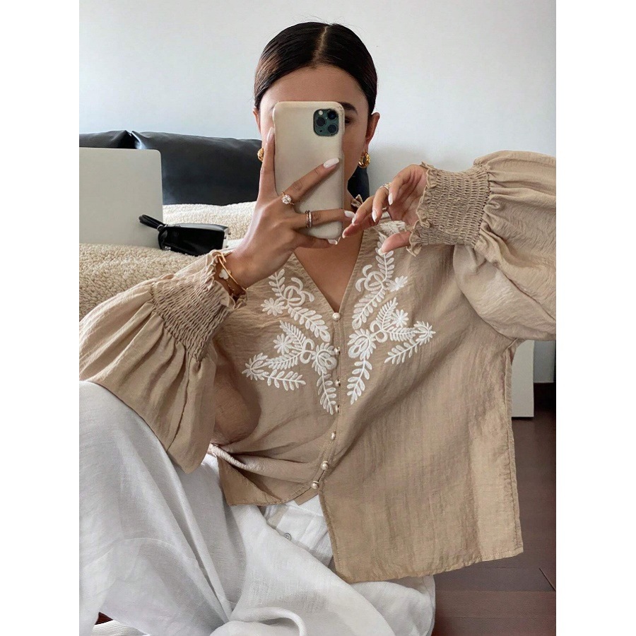 2025 유럽과 미국의 국경 간 여성 의류 Amazon 독립 스테이션 가을 새로운 자수 꽃 단추 긴팔 카디건 셔츠