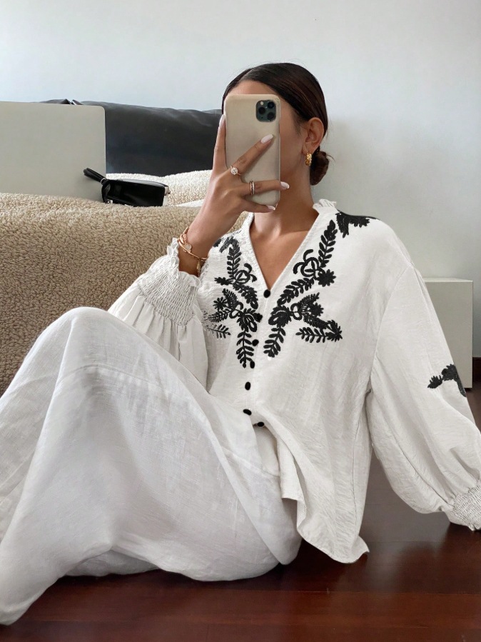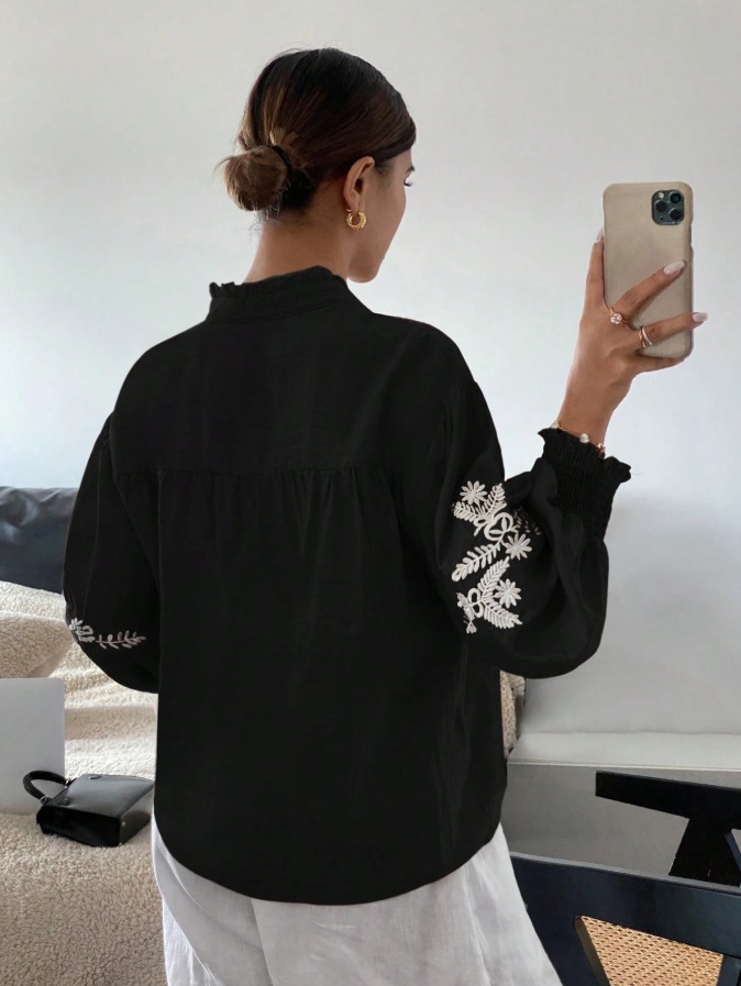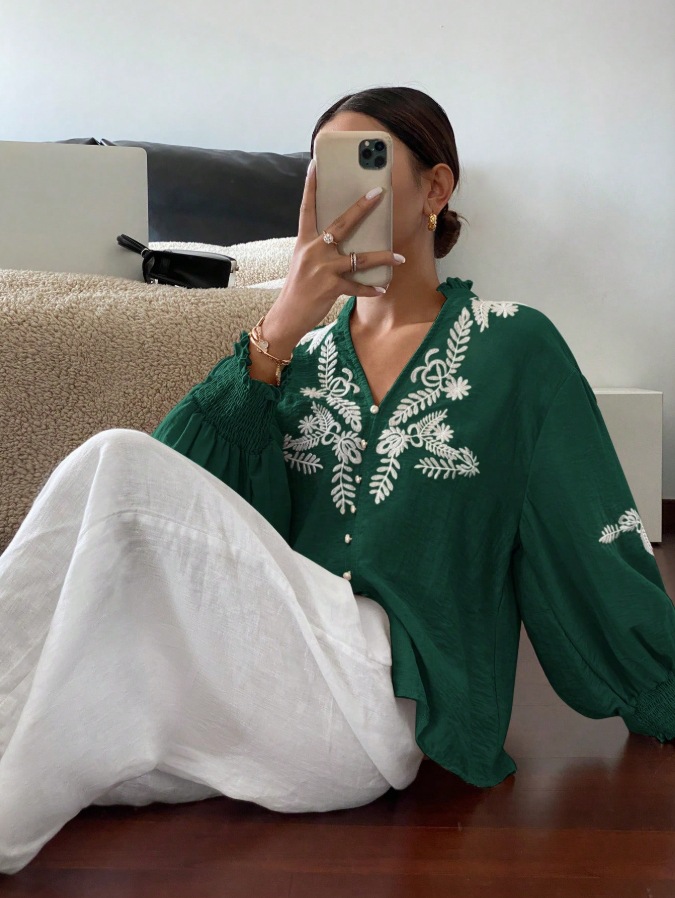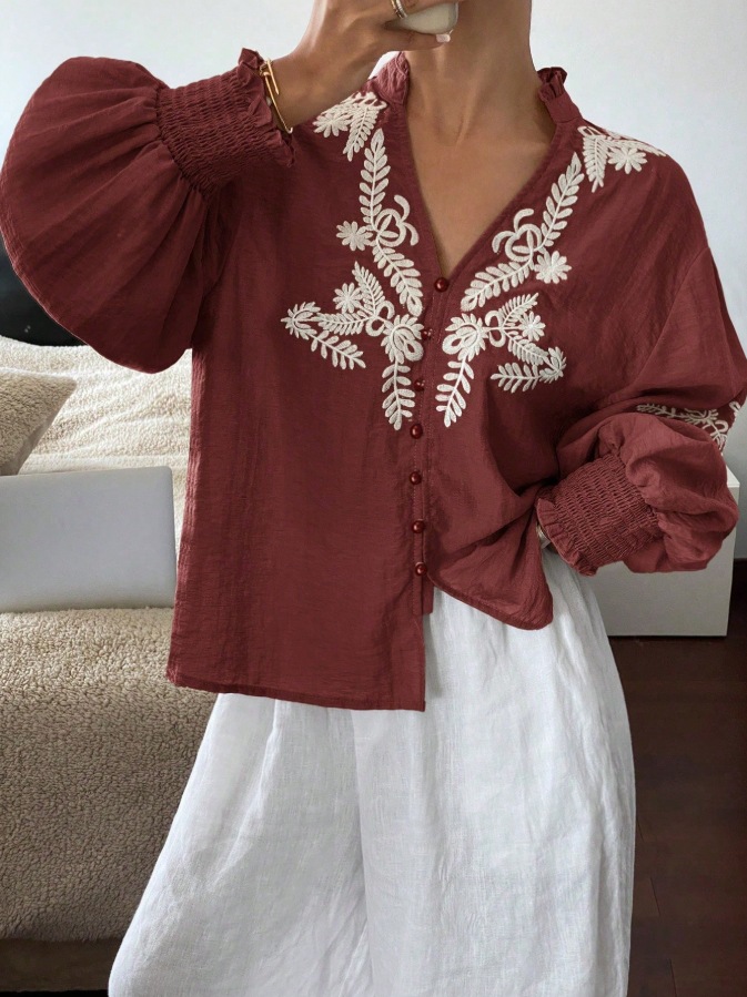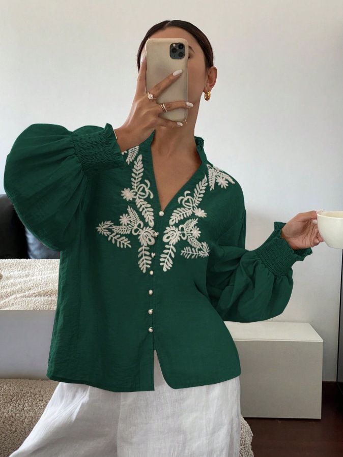 2025 유럽과 미국의 국경 간 여성 의류 Amazon 독립 스테이션 가을 새로운 자수 꽃 단추 긴팔 카디건 셔츠