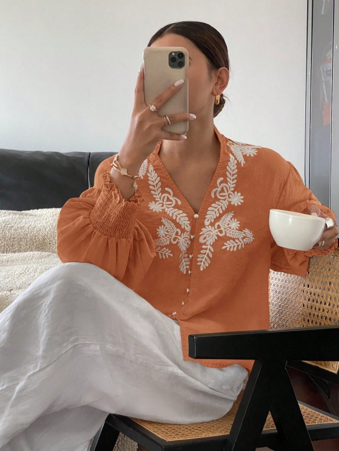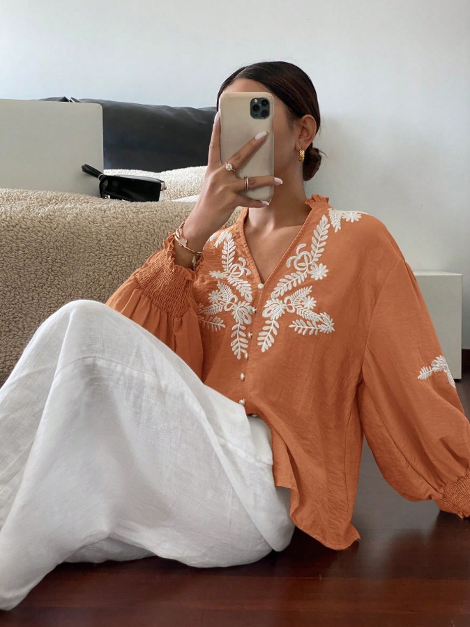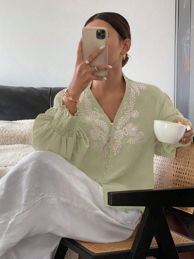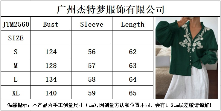2025 유럽과 미국의 국경 간 여성 의류 Amazon 독립 스테이션 가을 새로운 자수 꽃 단추 긴팔 카디건 셔츠스토어 가기