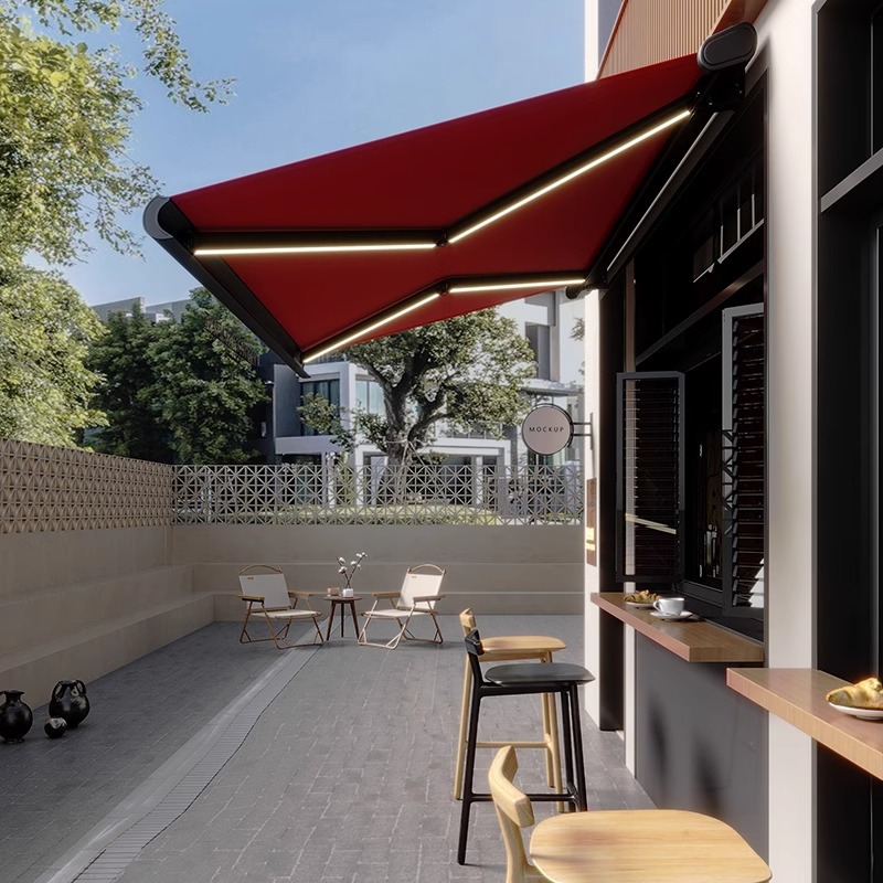 전기 차양, 야외 접이식 개폐식 차양, 조명이 있는 테라스, 안뜰, 홈 빌라 차양이 포함된 전체 상자스토어 가기