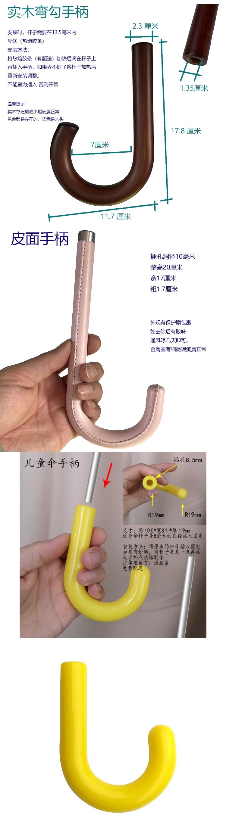 긴 막대 우산 어린이 우산 막대 손잡이 우산 액세서리 유모차 우산 손잡이 헤드 단단한 나무 플라스틱 곡선 후크 우산 손잡이
