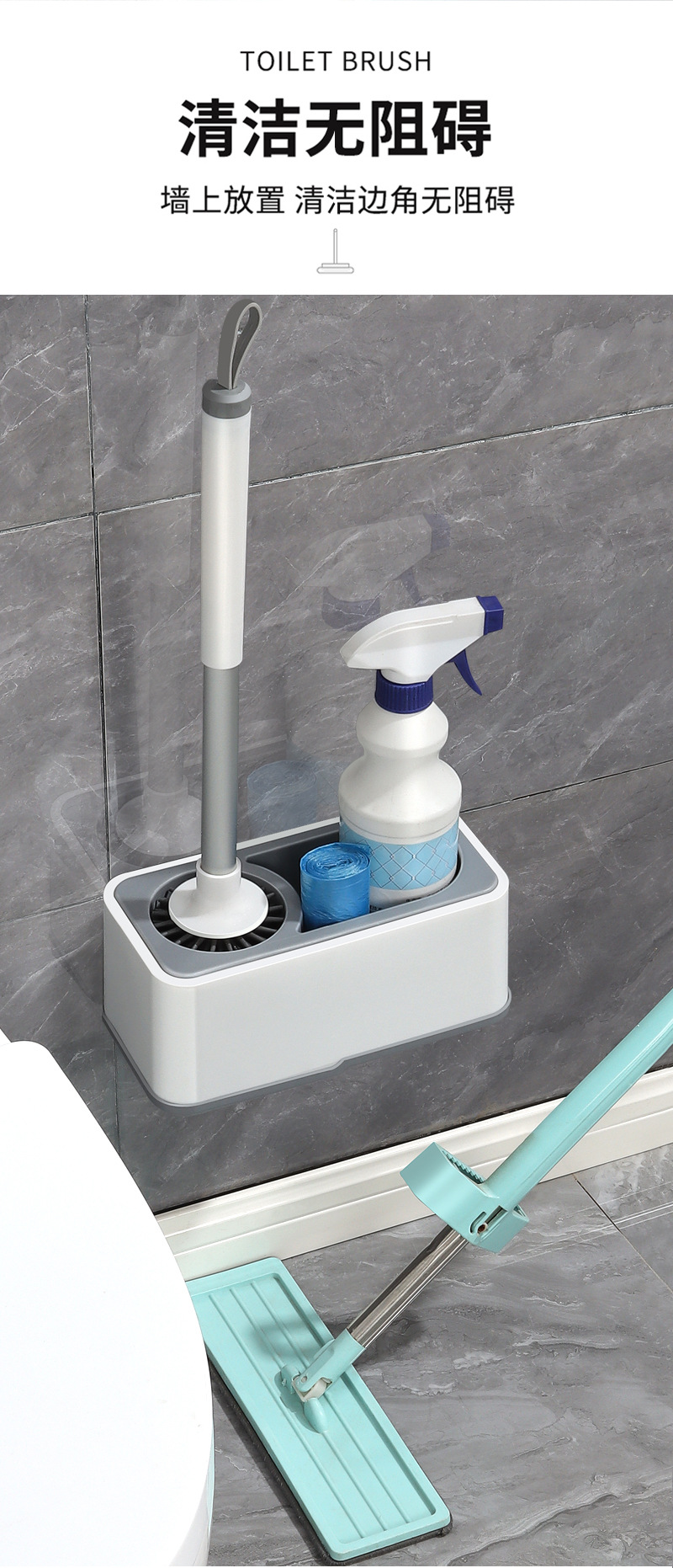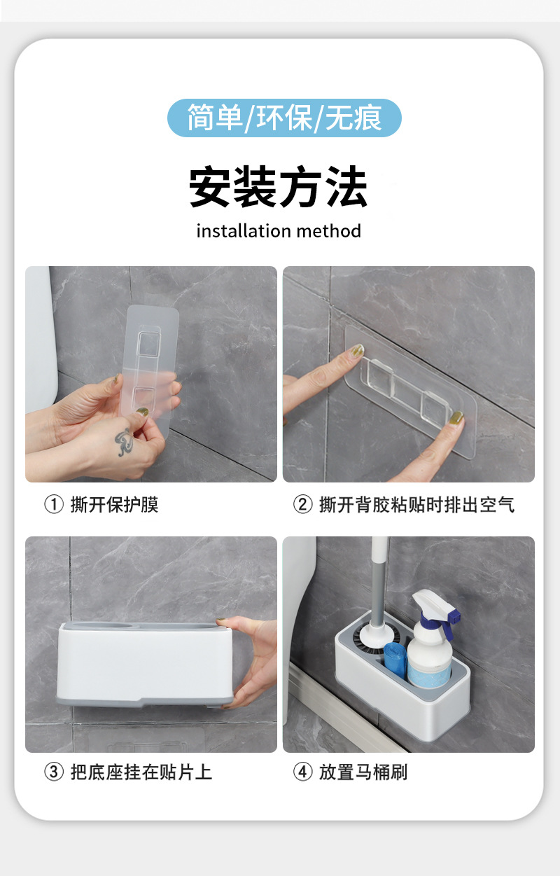 도매 가정용 변기솔 무타공 벽걸이 수납 구석구석 청소 가능 바닥 설치형 변기 청소솔 세트