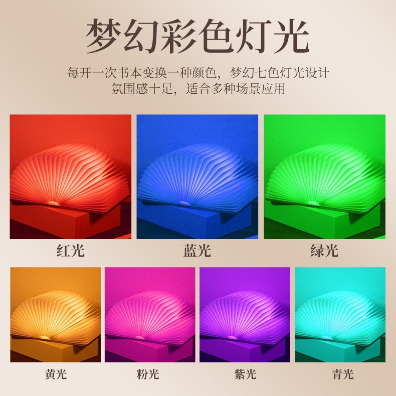 LED 나무 7 색 접이식 책 램프 분위기 램프 침실 따뜻한 창조적 인 야간 조명 생일 선물 축하 기념일