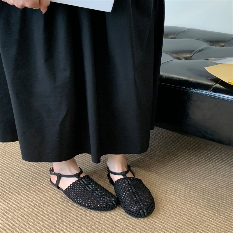 여성을위한 레트로 통기성 발가락 샌들 2025 새로운 여름 요정 스타일 캐주얼 소프트 플랫 로마 신발스토어 가기