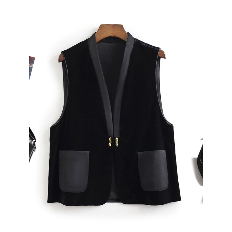 여성을위한 세련된 인기 조끼 2025 봄 중국 스타일 복고풍 새로운 중국 스타일 v 넥 버튼없는 벨벳 민소매 조끼 재킷