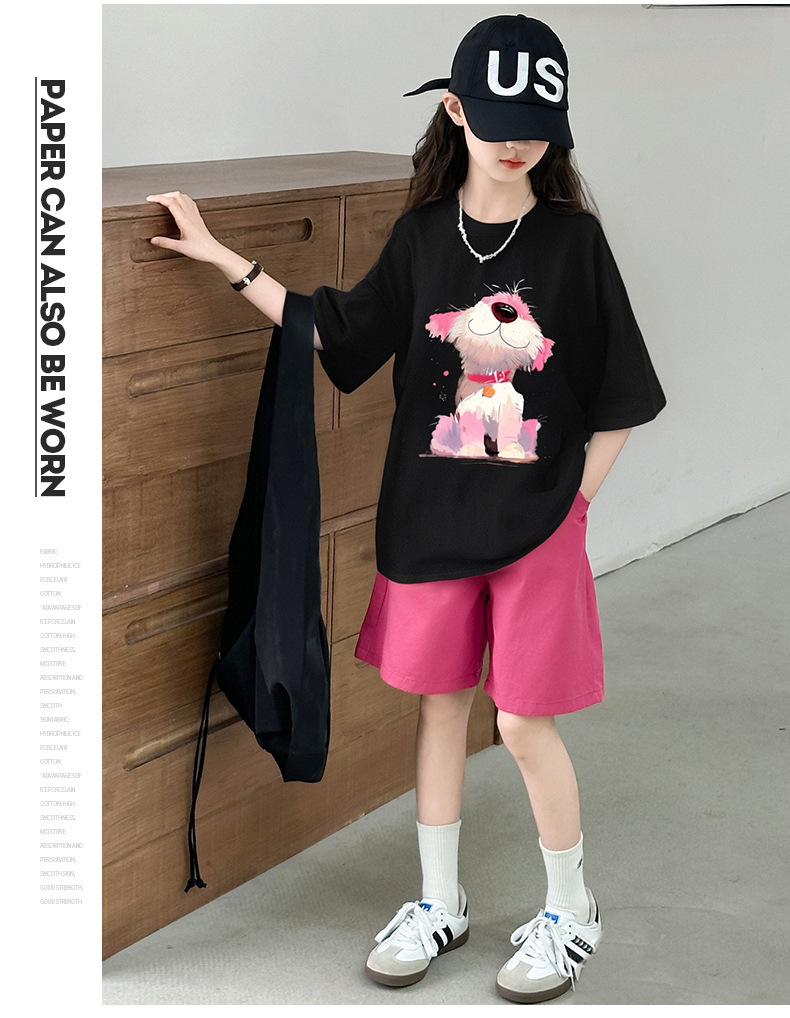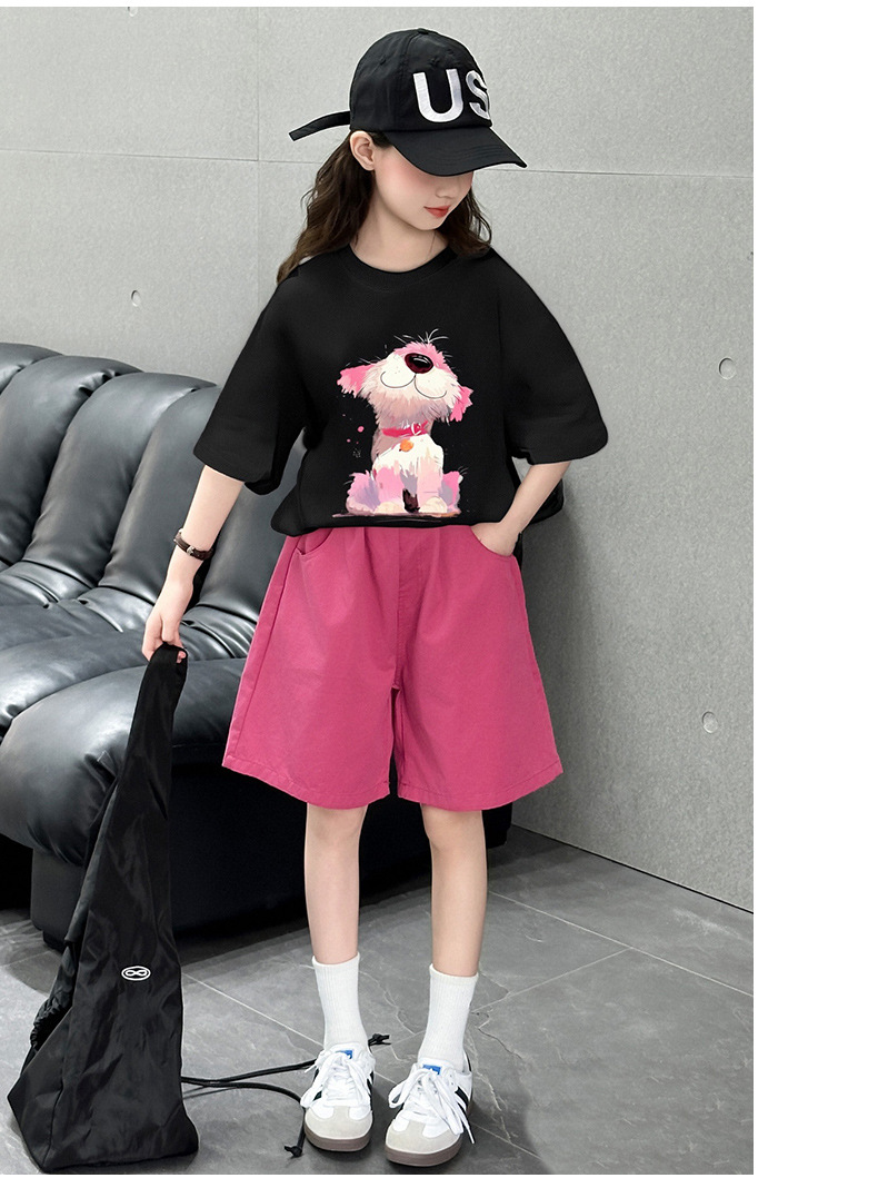여자 여름 티셔츠 세트 2025 새로운 스타일 캐주얼 얇은 아동 의류 아동 반팔 반바지 투피스 세트 유행