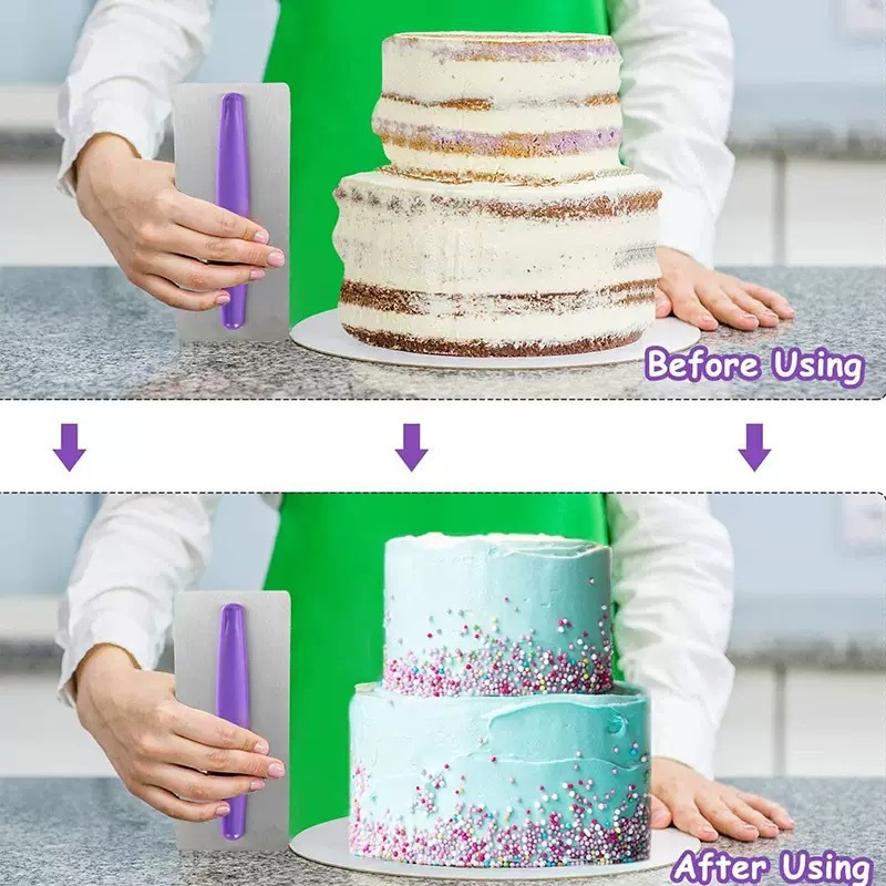 W 시리즈 스테인레스 스틸 스크레이퍼 대형 퐁당 크림 케이크 범용 스무딩 도구 OPP 간단한 팩