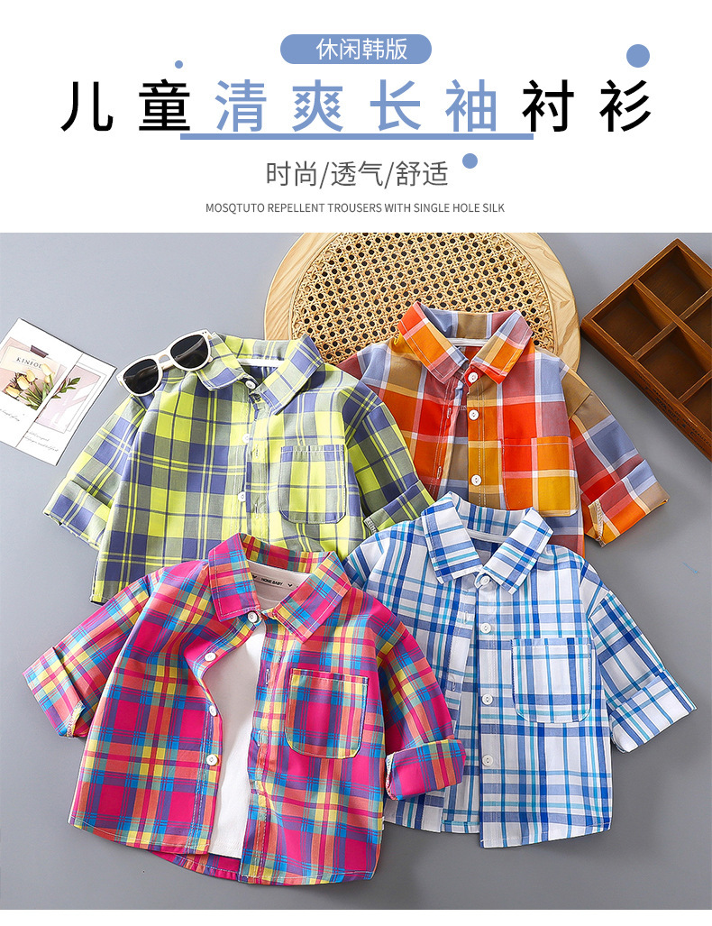 아동용 셔츠 남성용 2025 새로운 스타일 베이비 스타일 코튼 체크 무늬 셔츠 봄, 가을 어린이 패션 라펠 가디건스토어 가기