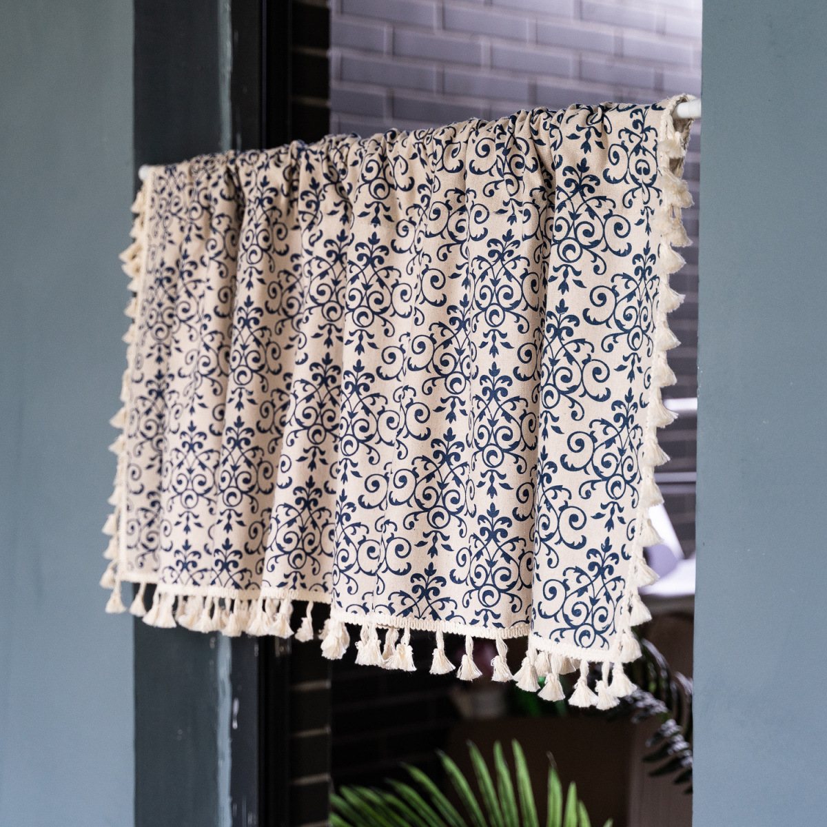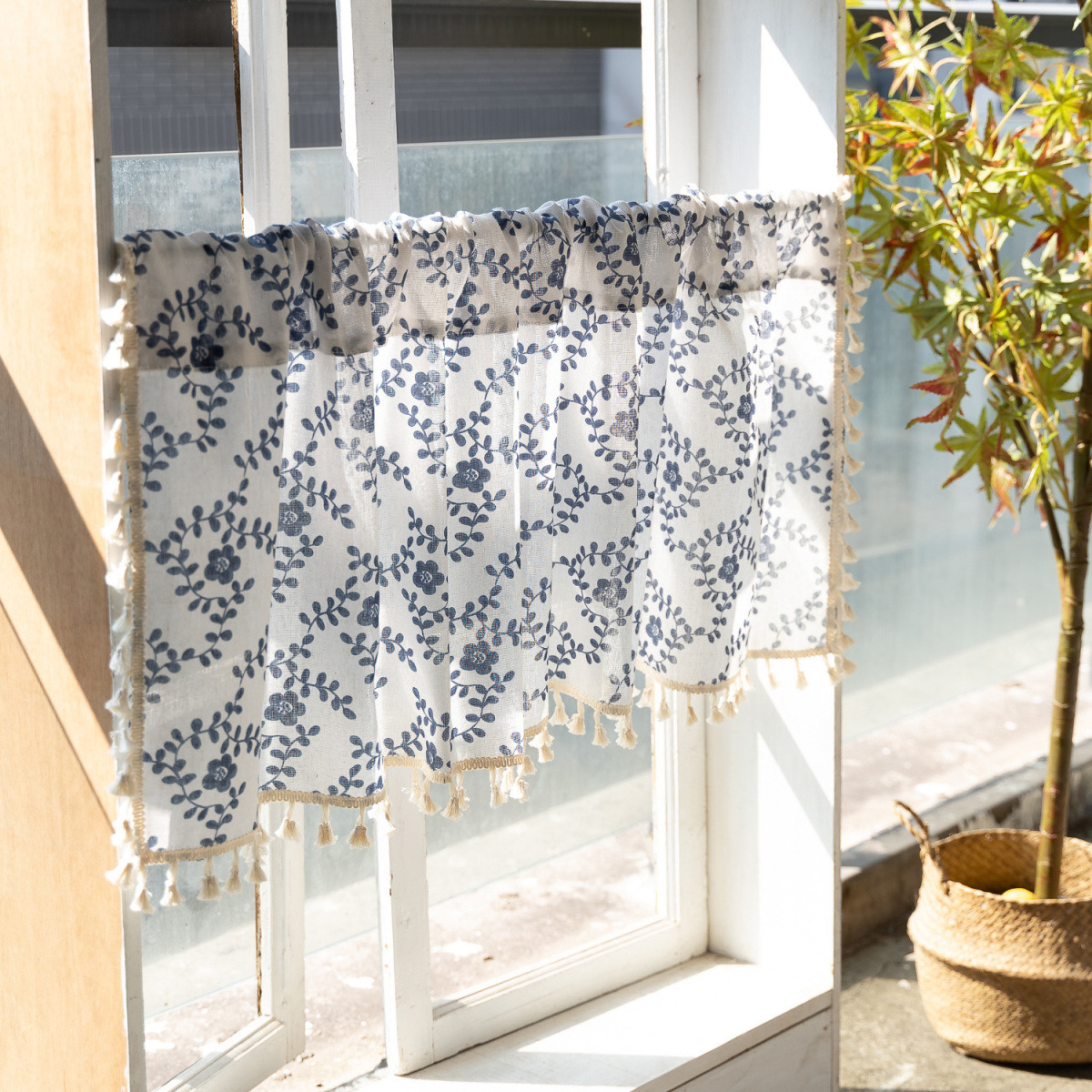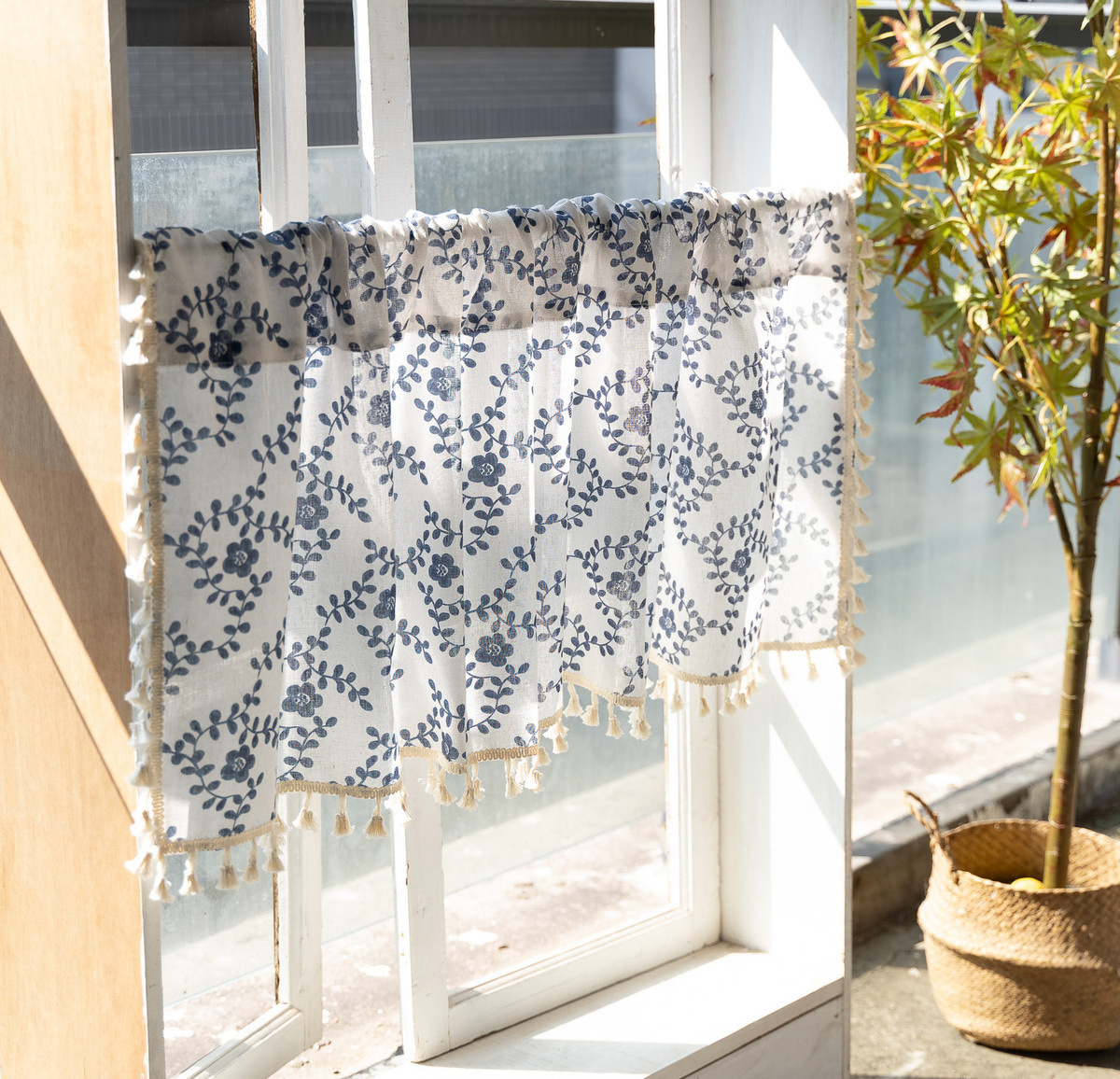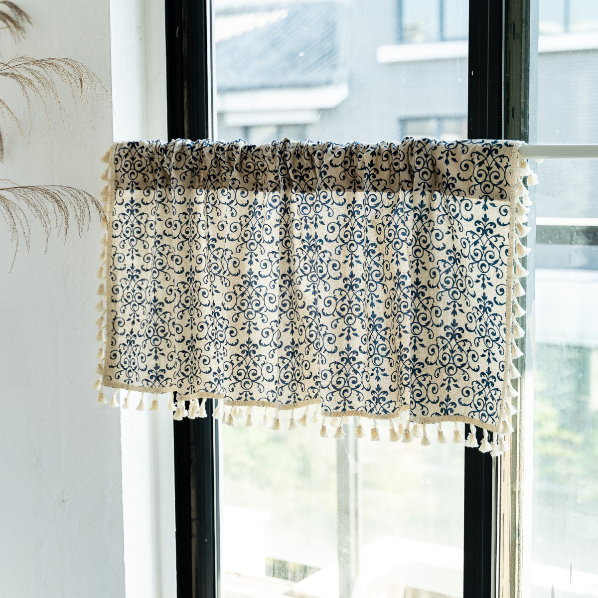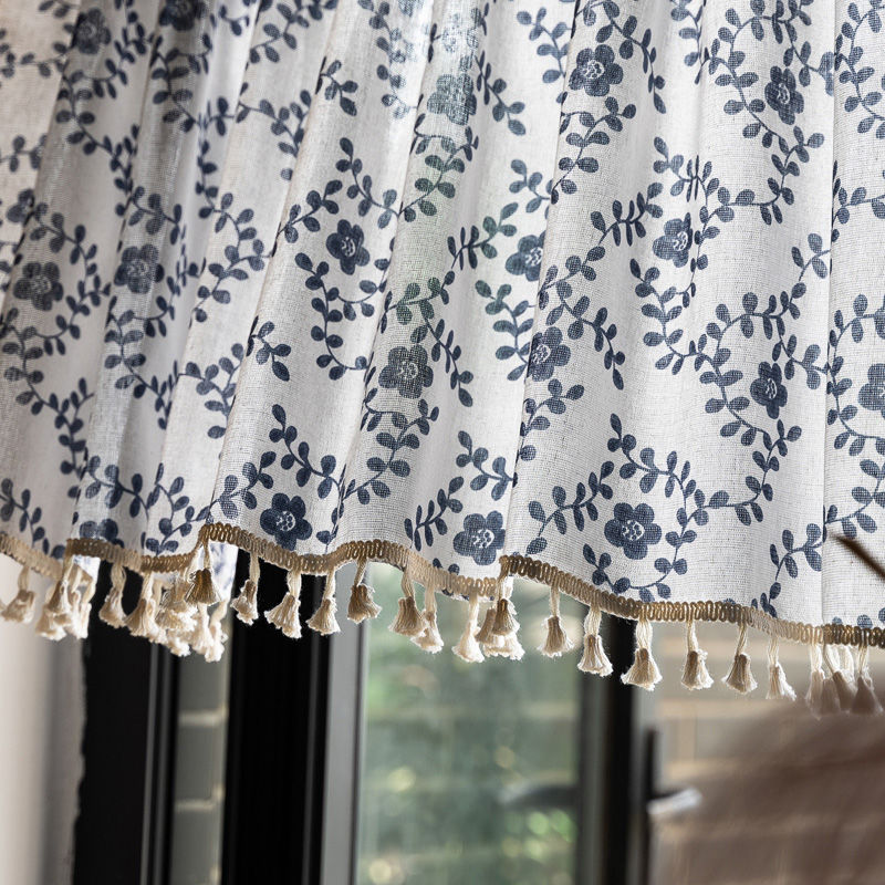 꽃 면 및 린넨 커피 커튼 주방 짧은 커튼 파티션 커튼 하프 커튼 자체 접착 커튼 아메리칸 스타일 새로운 스타일스토어 가기