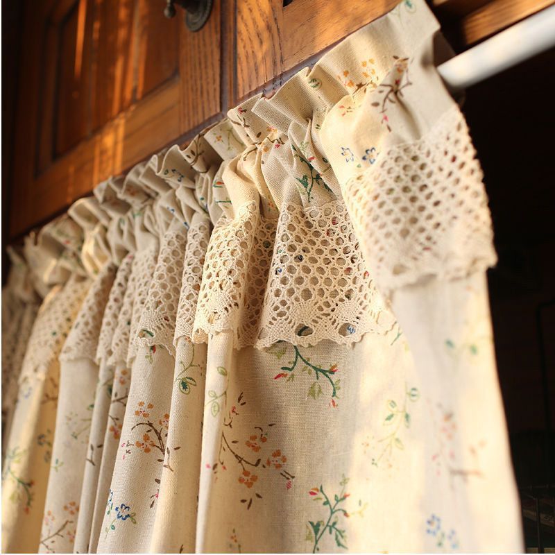 꽃 면 및 린넨 커피 커튼 주방 짧은 커튼 파티션 커튼 하프 커튼 자체 접착 커튼 아메리칸 스타일 새로운 스타일