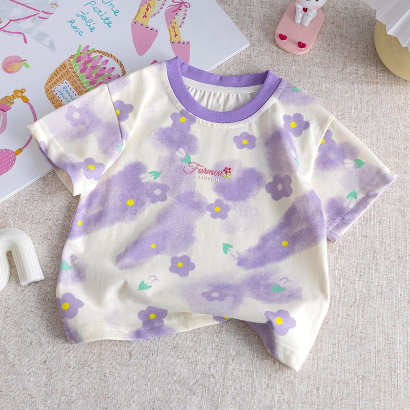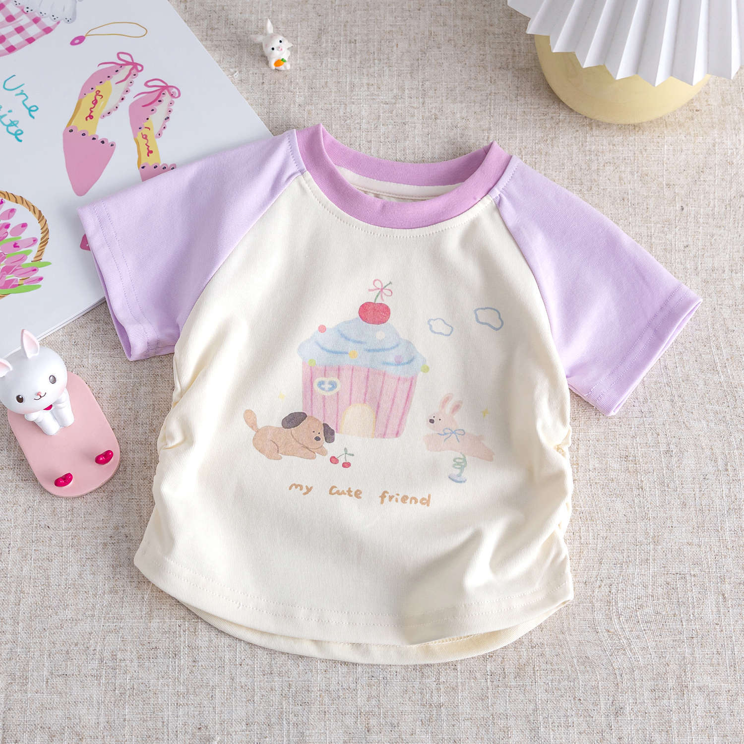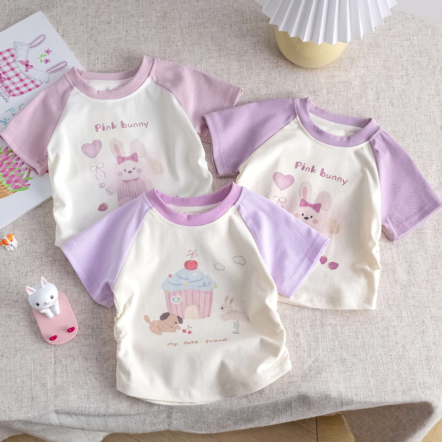 여아 반팔 티셔츠 여름 옷 2025 새로운 스타일 아동상의 아기 소녀 다용도 바닥 셔츠 여름 옷스토어 가기