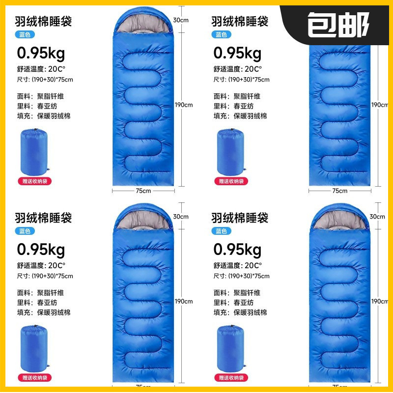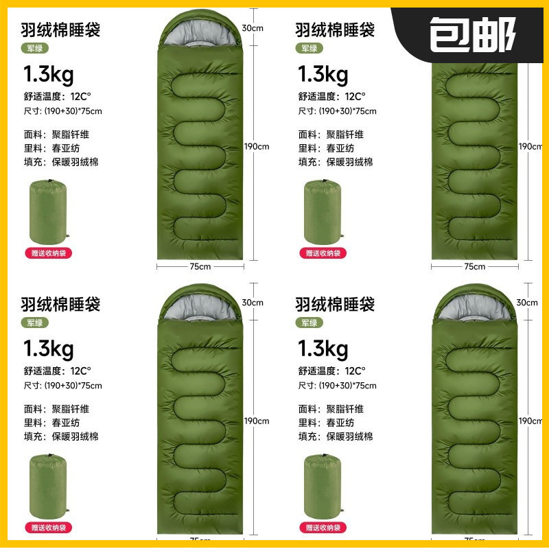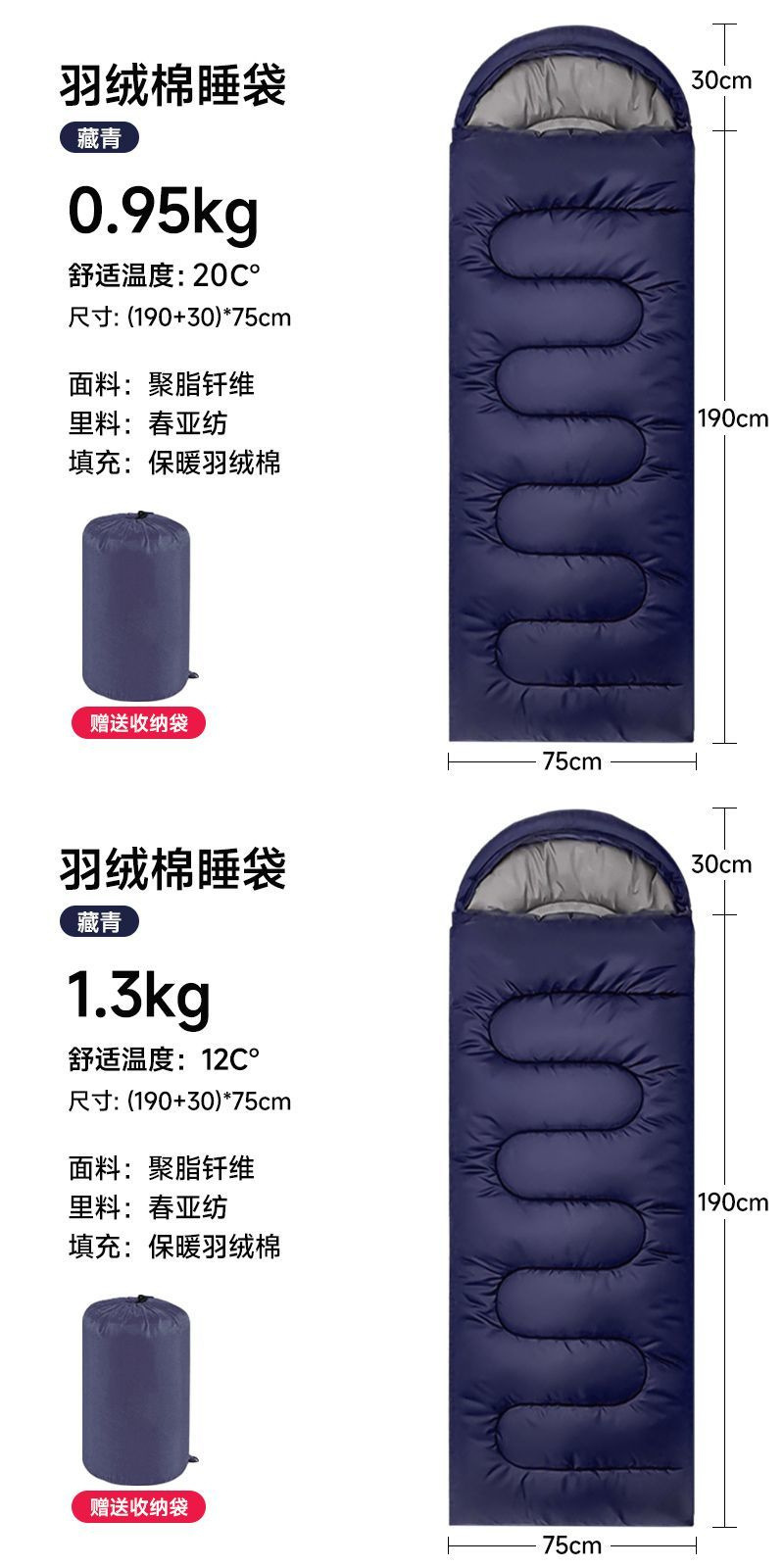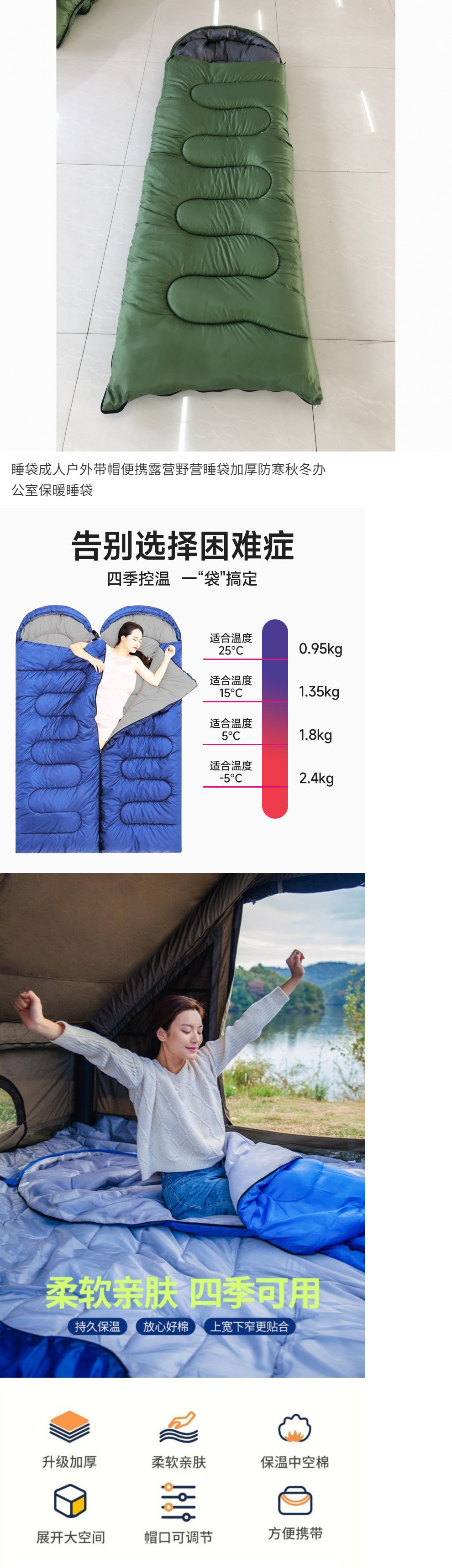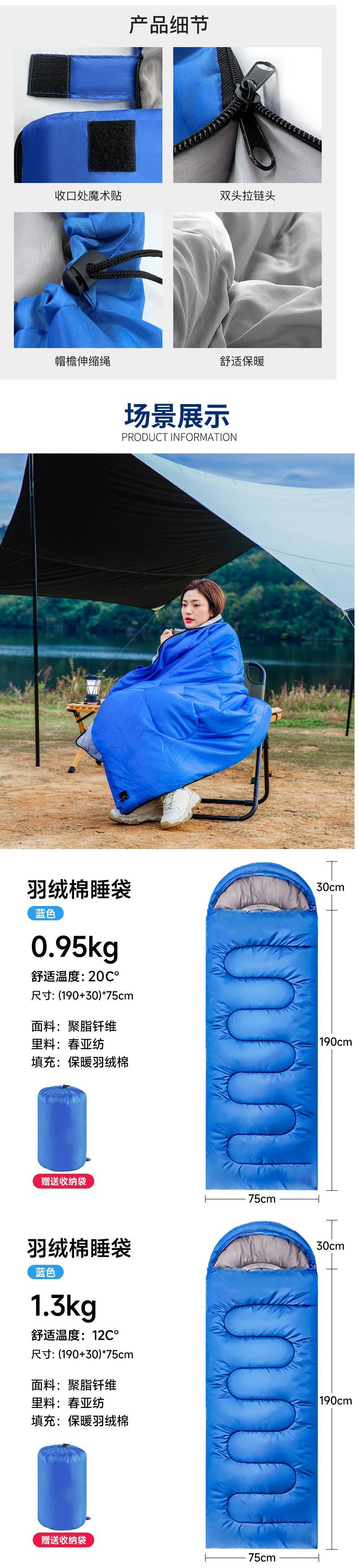 후드가 있는 성인 야외 건설 현장용 침낭, 휴대용 캠핑, 두꺼운 방한 가을 겨울 사무실 따뜻한 투인원스토어 가기