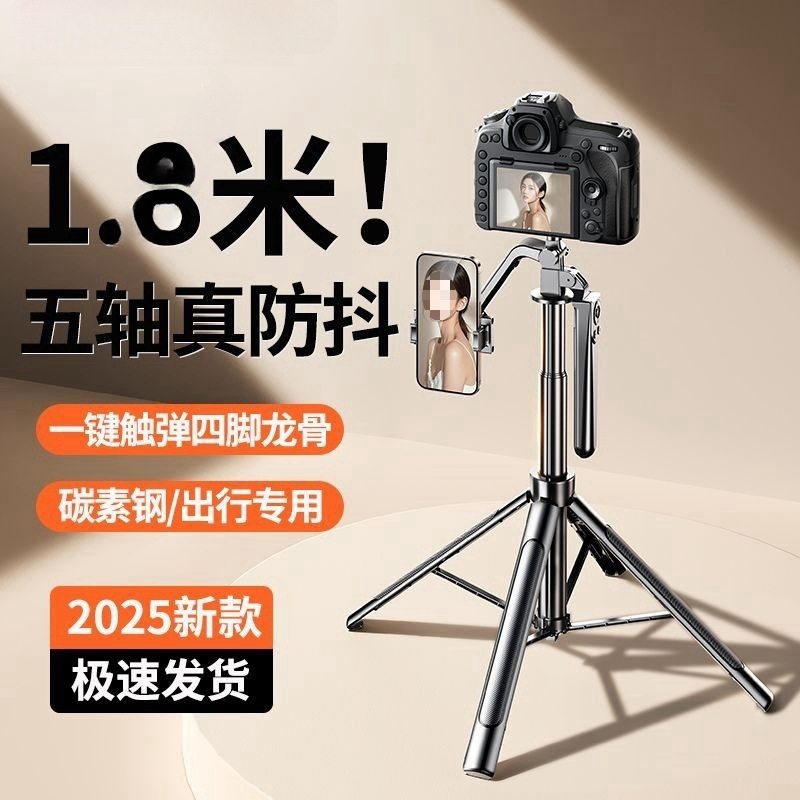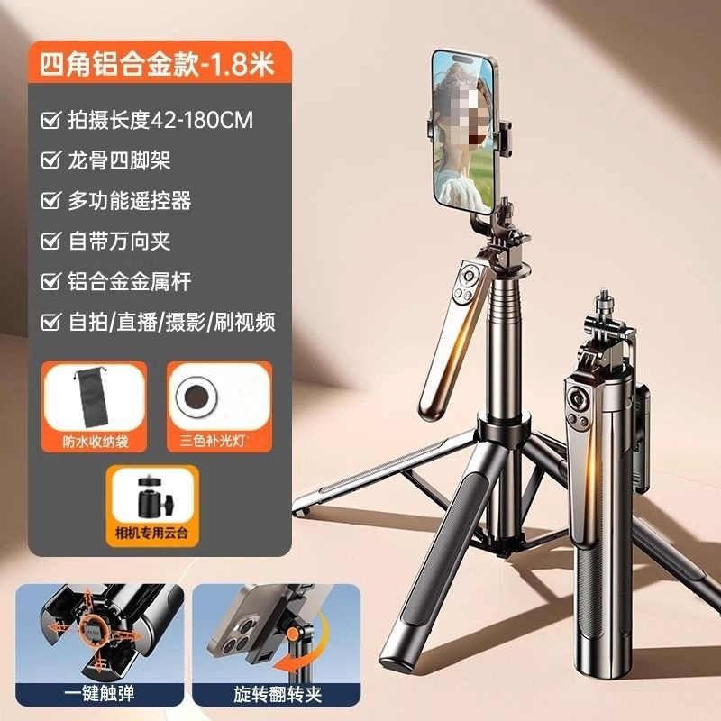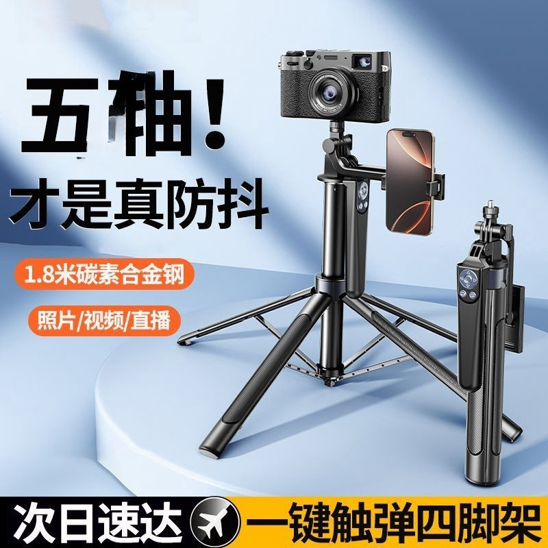 • 신형 [5축-팬틸트 폴] 버튼 터치*초 삼각대 오픈-더블 소형 램프 모델[1.8m] 다기능 리모콘*안정적인 4개의 다리