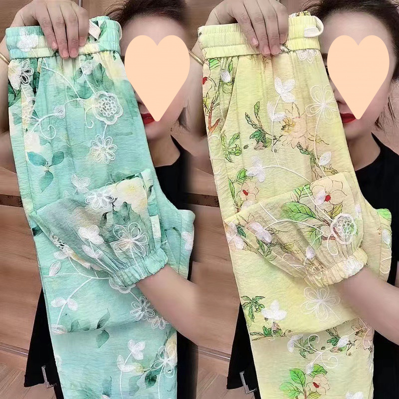 여름 아이스 실크 쿨 캐주얼 팬츠 여성용 루즈하고 다재다능한 외국 스타일 9부 팬츠 새로운 슬리밍 하렘 팬츠스토어 가기