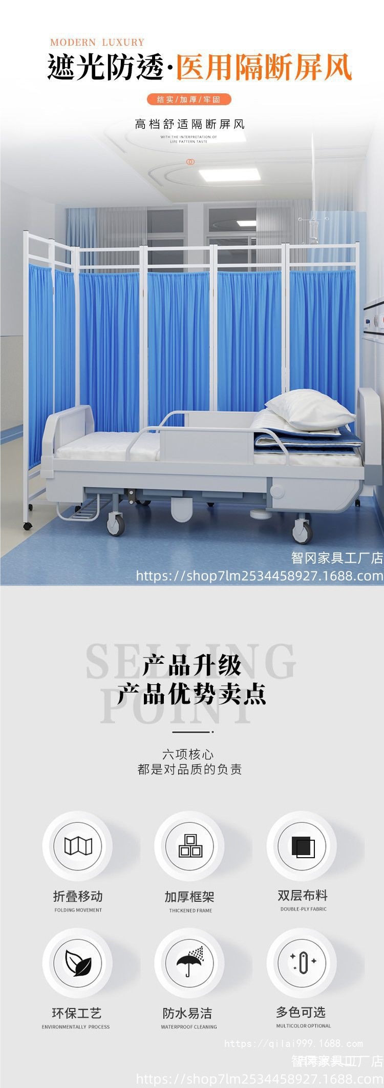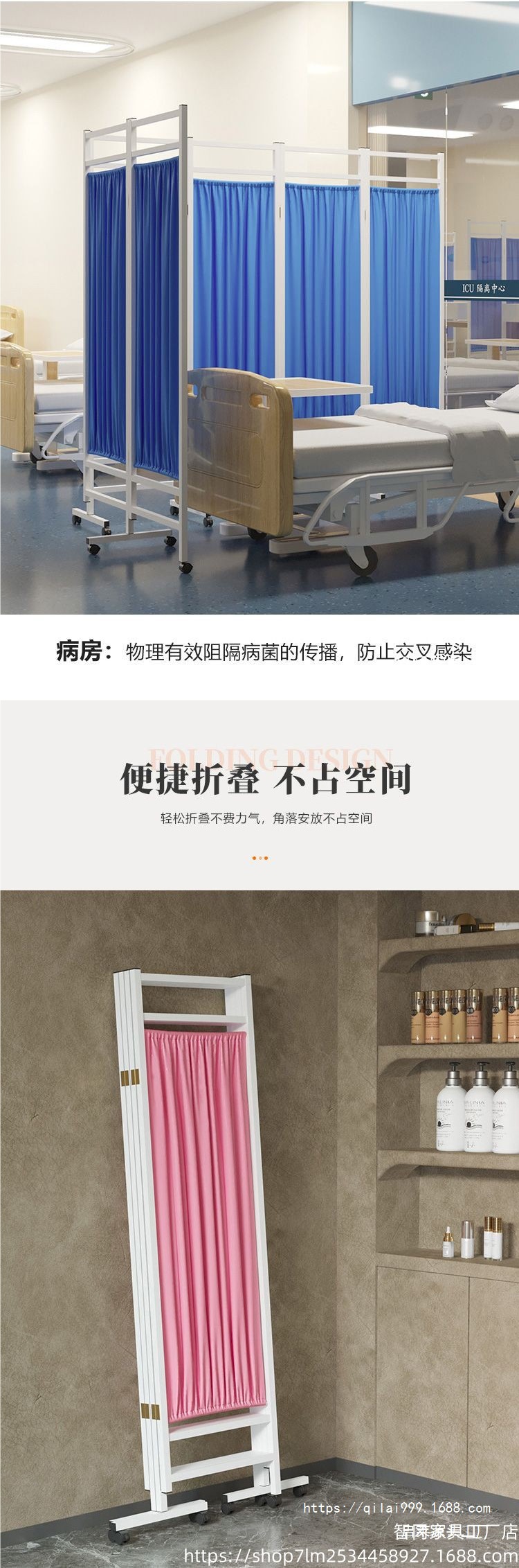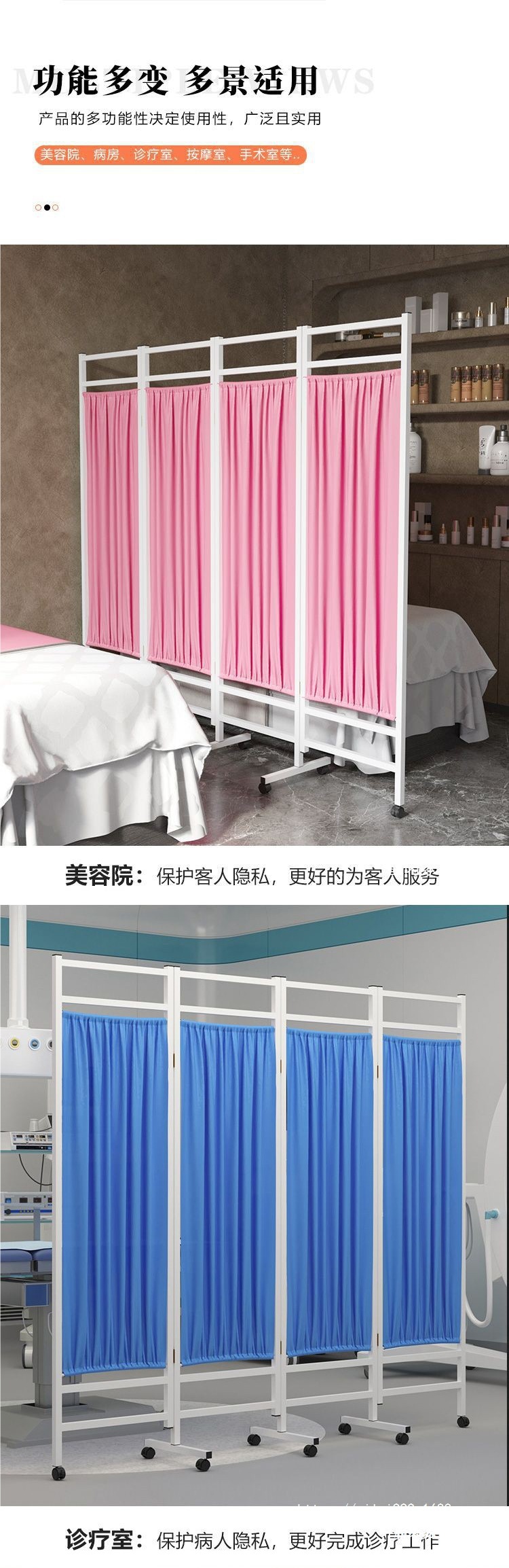 스크린 병원 철제 직물 의료 칸막이 접이식 스크린 위생실 클리닉 미용 푸시풀 이동식 접이식 바퀴스토어 가기
