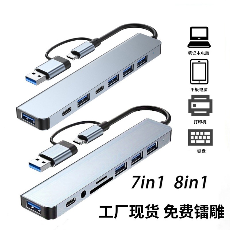 • [8-in-2 듀얼 헤드] USB3.0+3*USB2.0+SD+TF+3.5 오디오+USB C