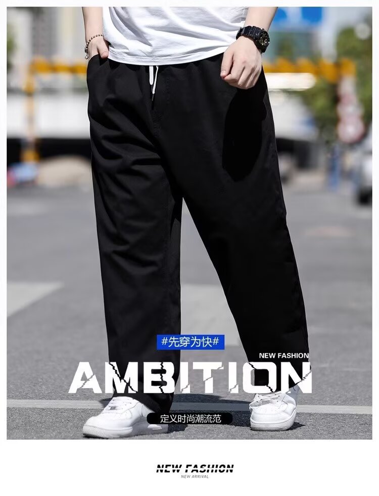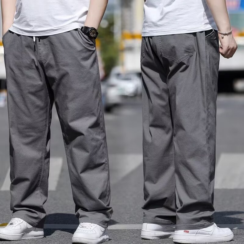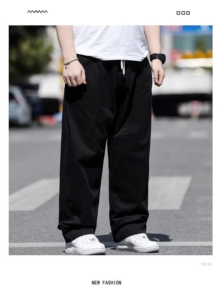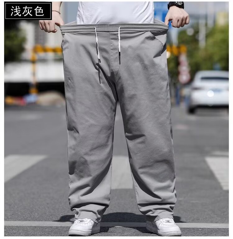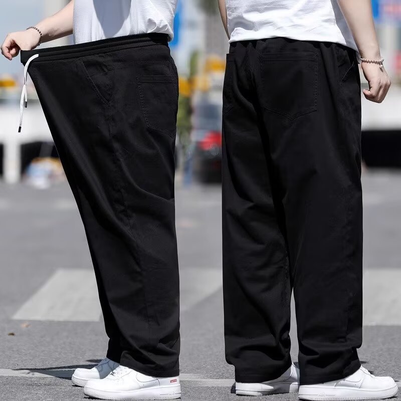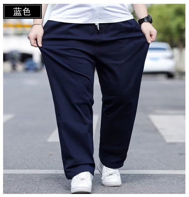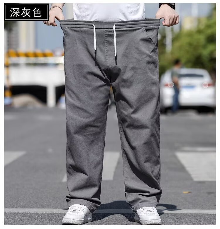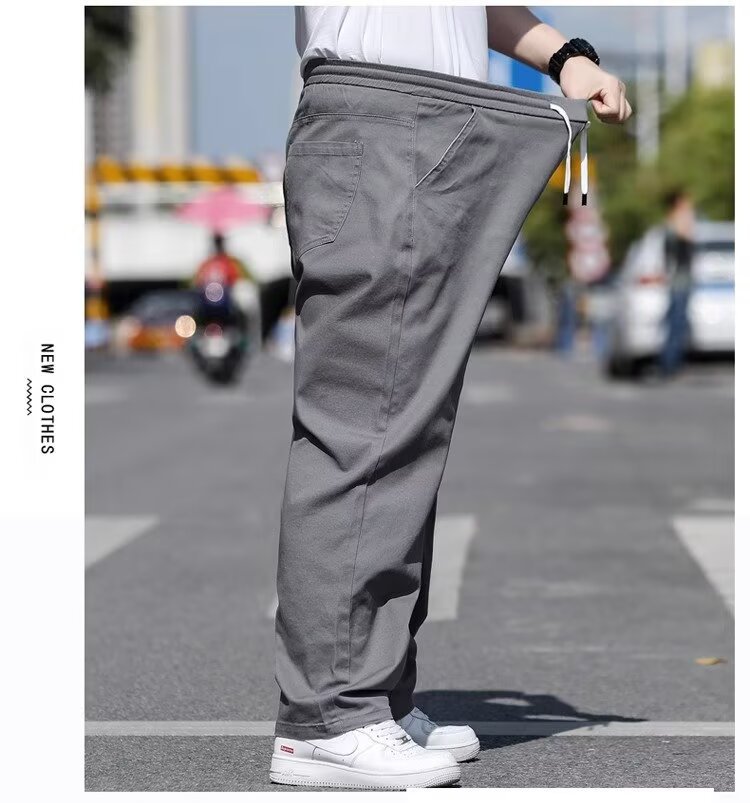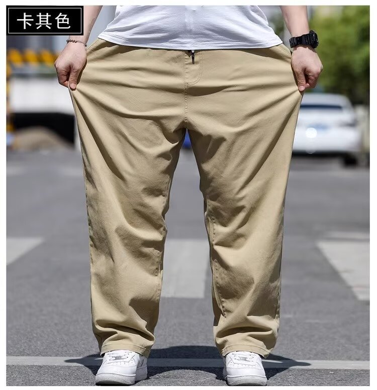 뚱뚱한 남성을 위한 봄 여름 플러스 사이즈 캐주얼 바지, 뚱뚱한 남자를 위한 플러스 사이즈 루즈 스트레이트 팬츠, 얇은 신축성 있는 바지