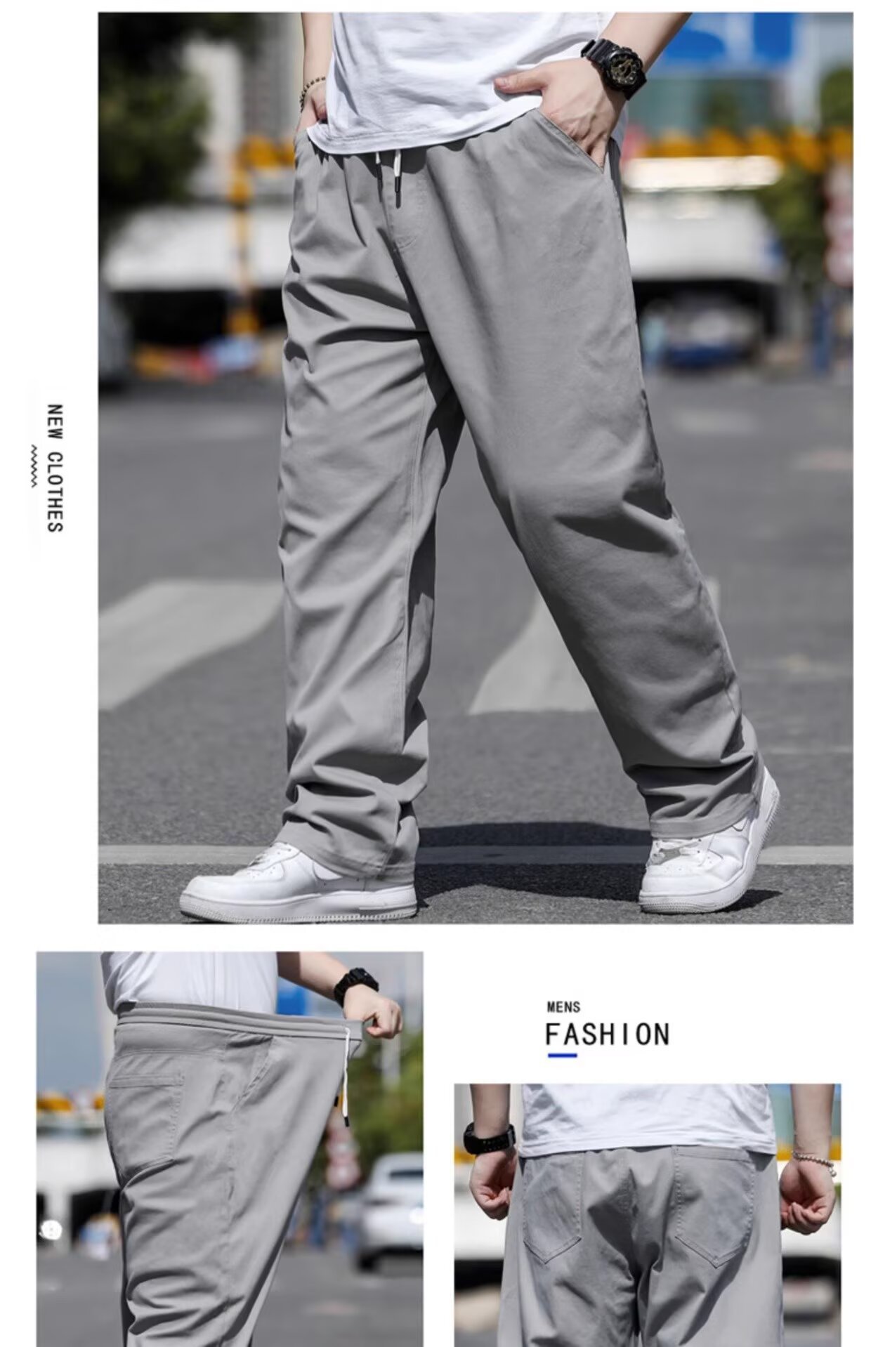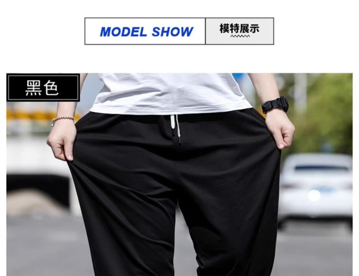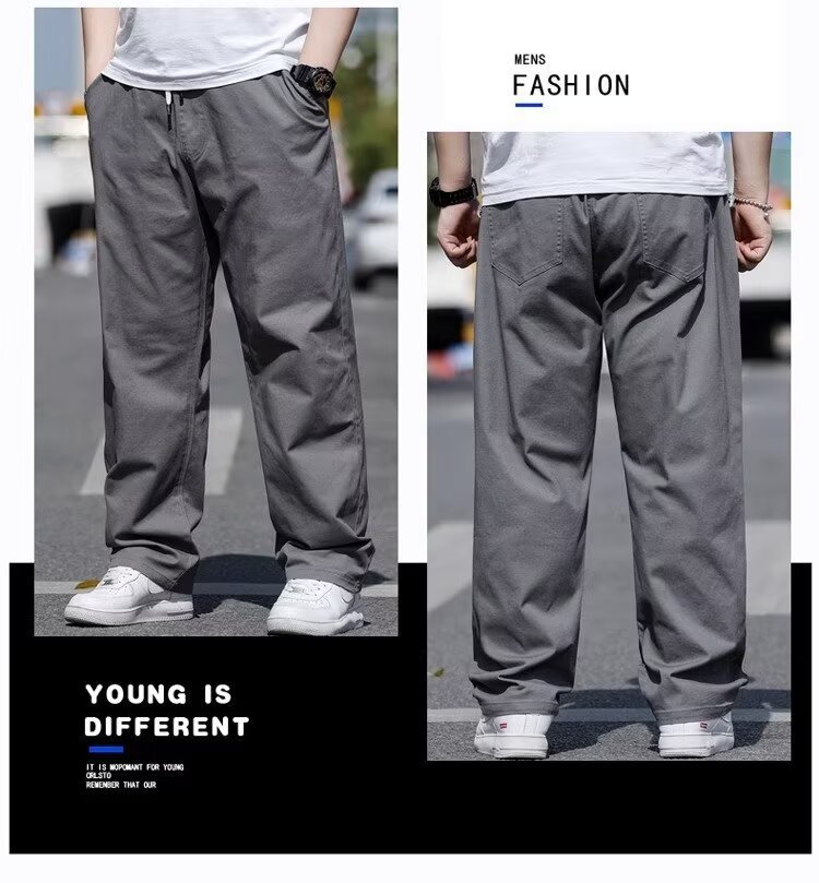 뚱뚱한 남성을 위한 봄 여름 플러스 사이즈 캐주얼 바지, 뚱뚱한 남자를 위한 플러스 사이즈 루즈 스트레이트 팬츠, 얇은 신축성 있는 바지스토어 가기