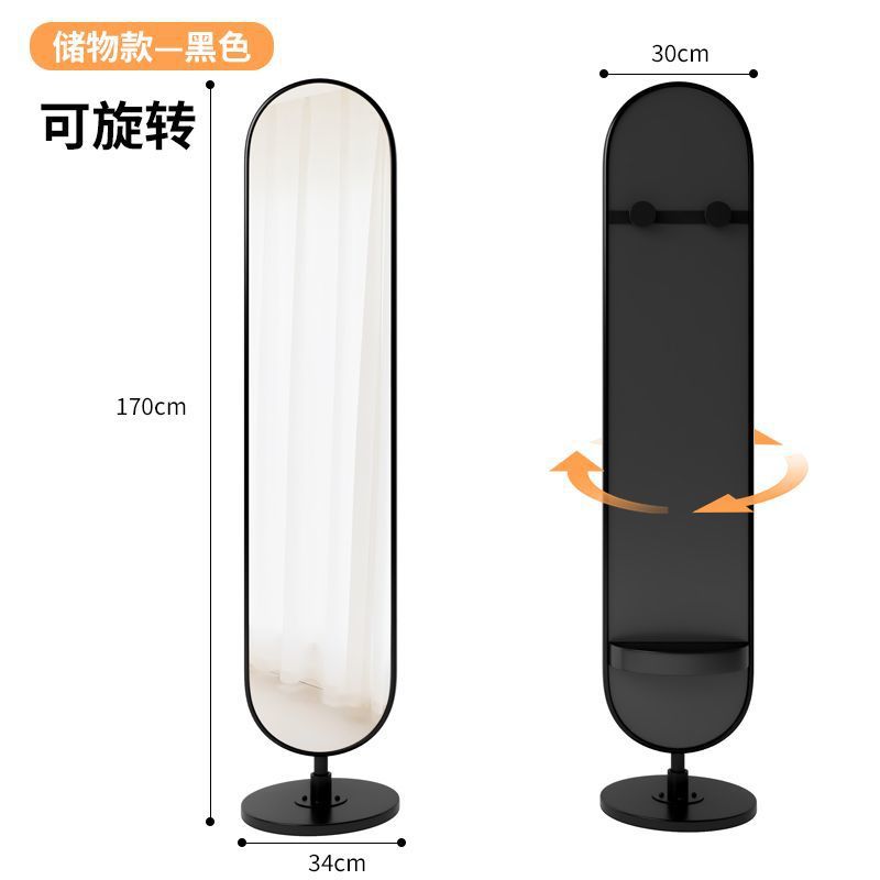 가정용 침실을 위한 가벼운 럭셔리 스타일 바닥 거울, 크림 스타일 드레싱 거울, 인터넷 유명인 철제 회전식 전신 거울(수납 포함)스토어 가기