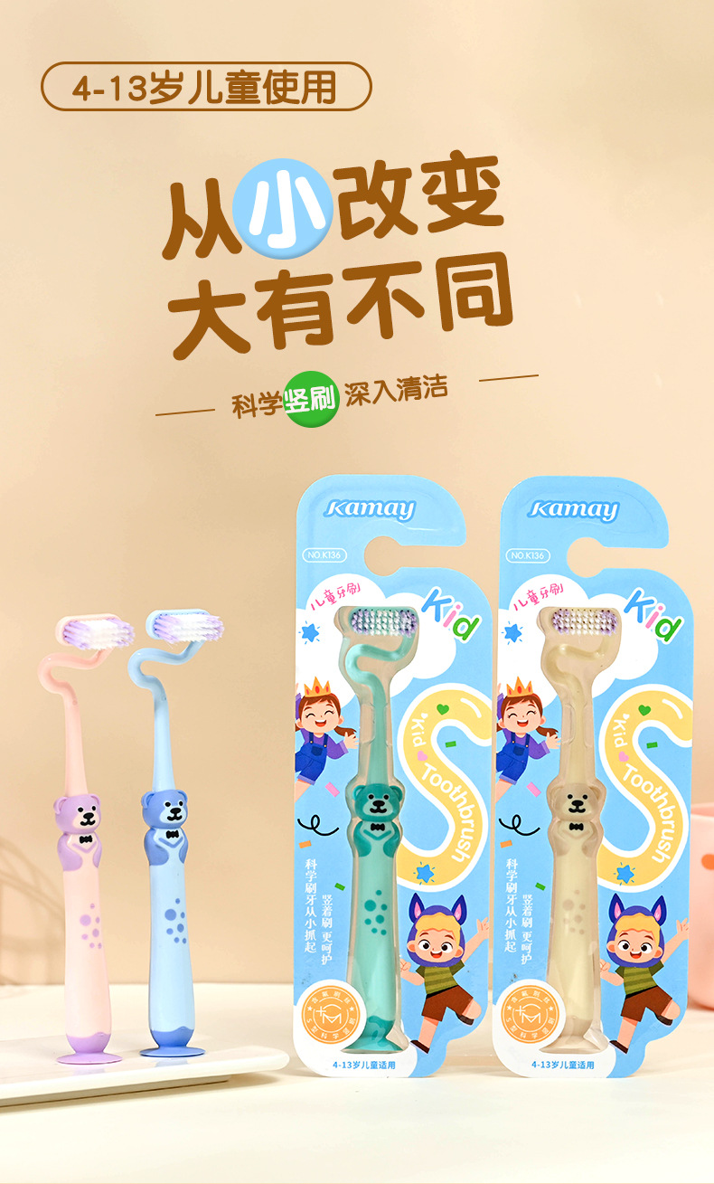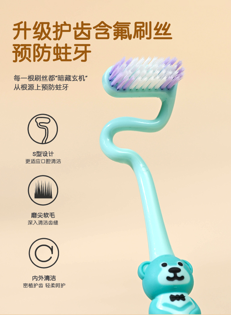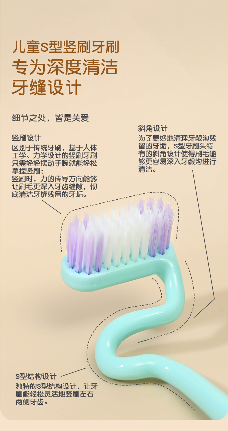 카멜 S자형 칫솔, 부드러운 칫솔모 칫솔, 바르톨로메오 양치법, 수직 칫솔질, 고급 가정용 어린이, 유아 및 학생용스토어 가기
