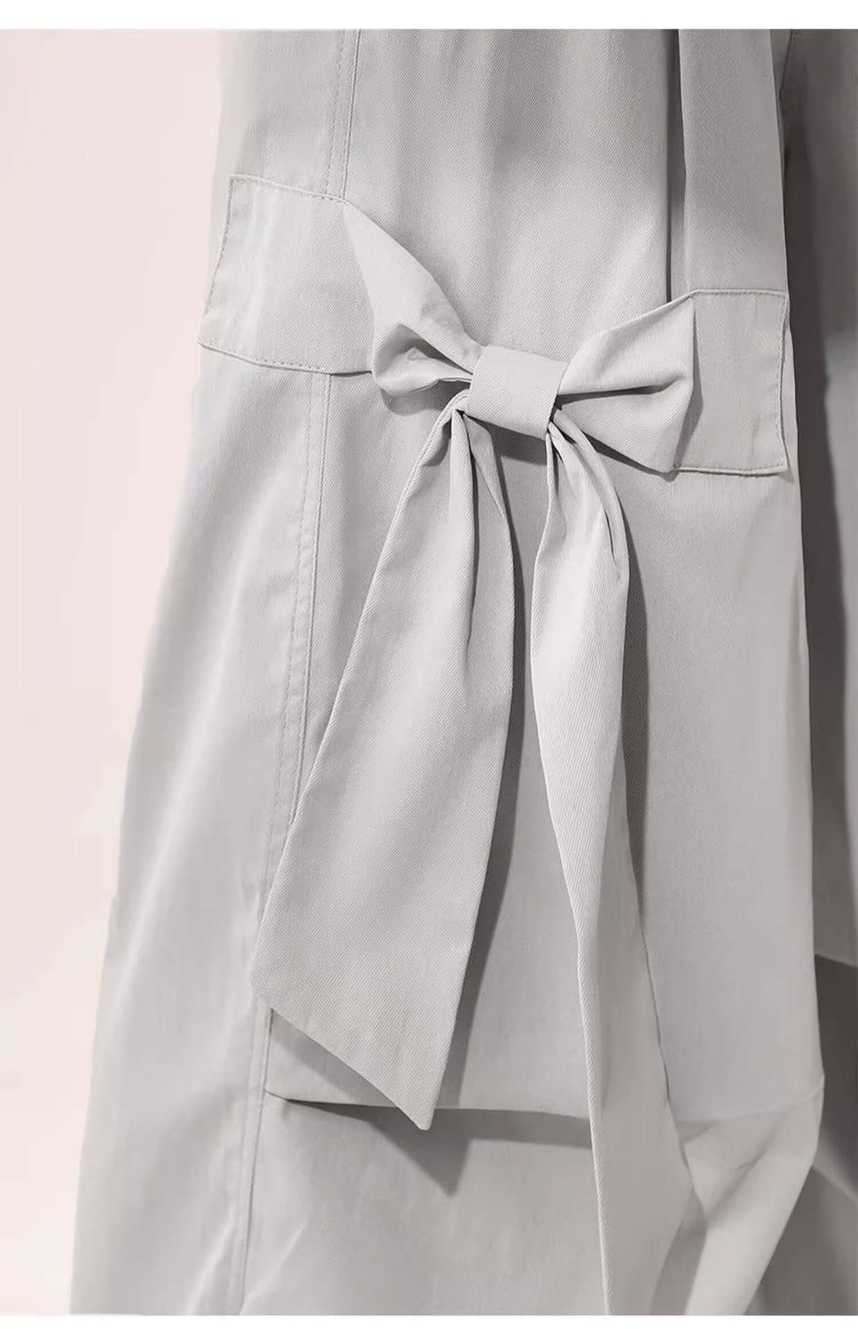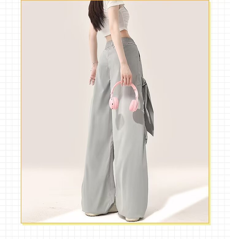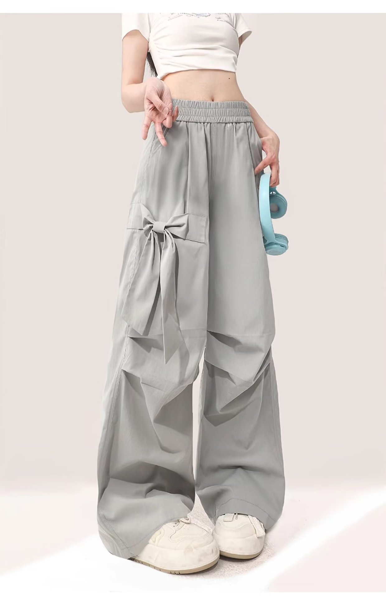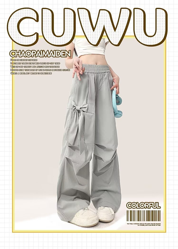 리본 장식 여성용 카고 팬츠 2025 신상 루즈핏 스트레이트 롱 팬츠 슬림핏 와이드 팬츠 롱 팬츠 패셔너블스토어 가기