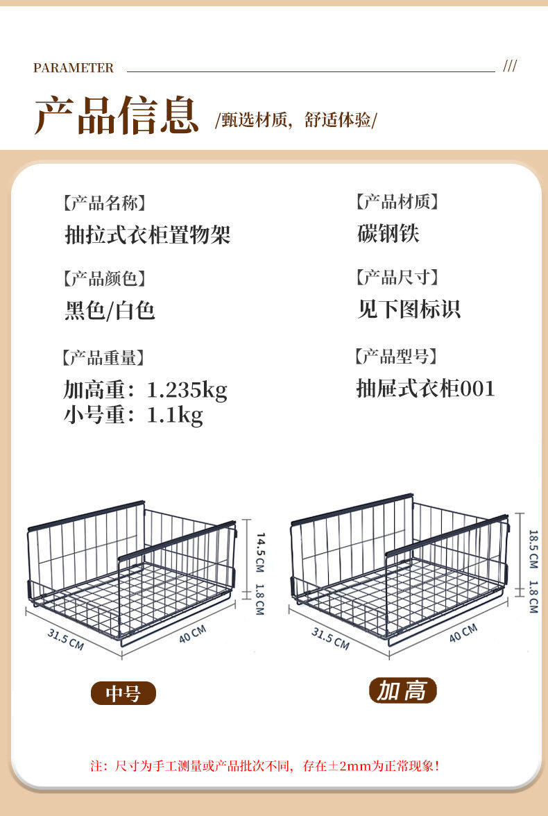 中号2层尺寸32*6.5*42,2.05kg/套,加高2层2.18kg\套