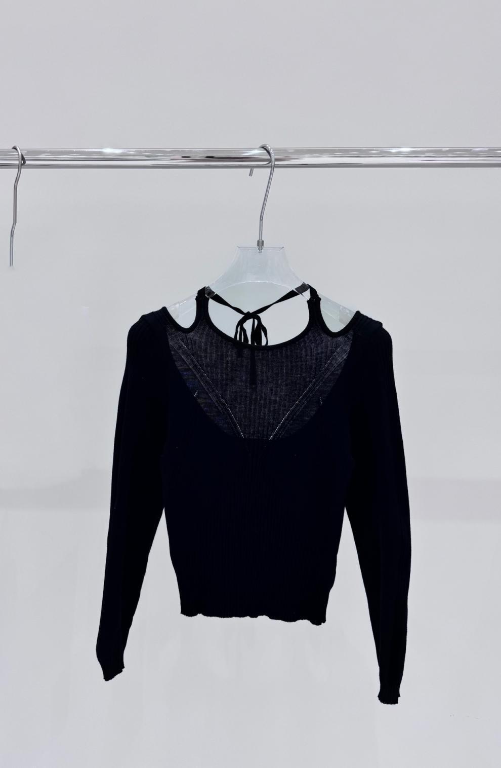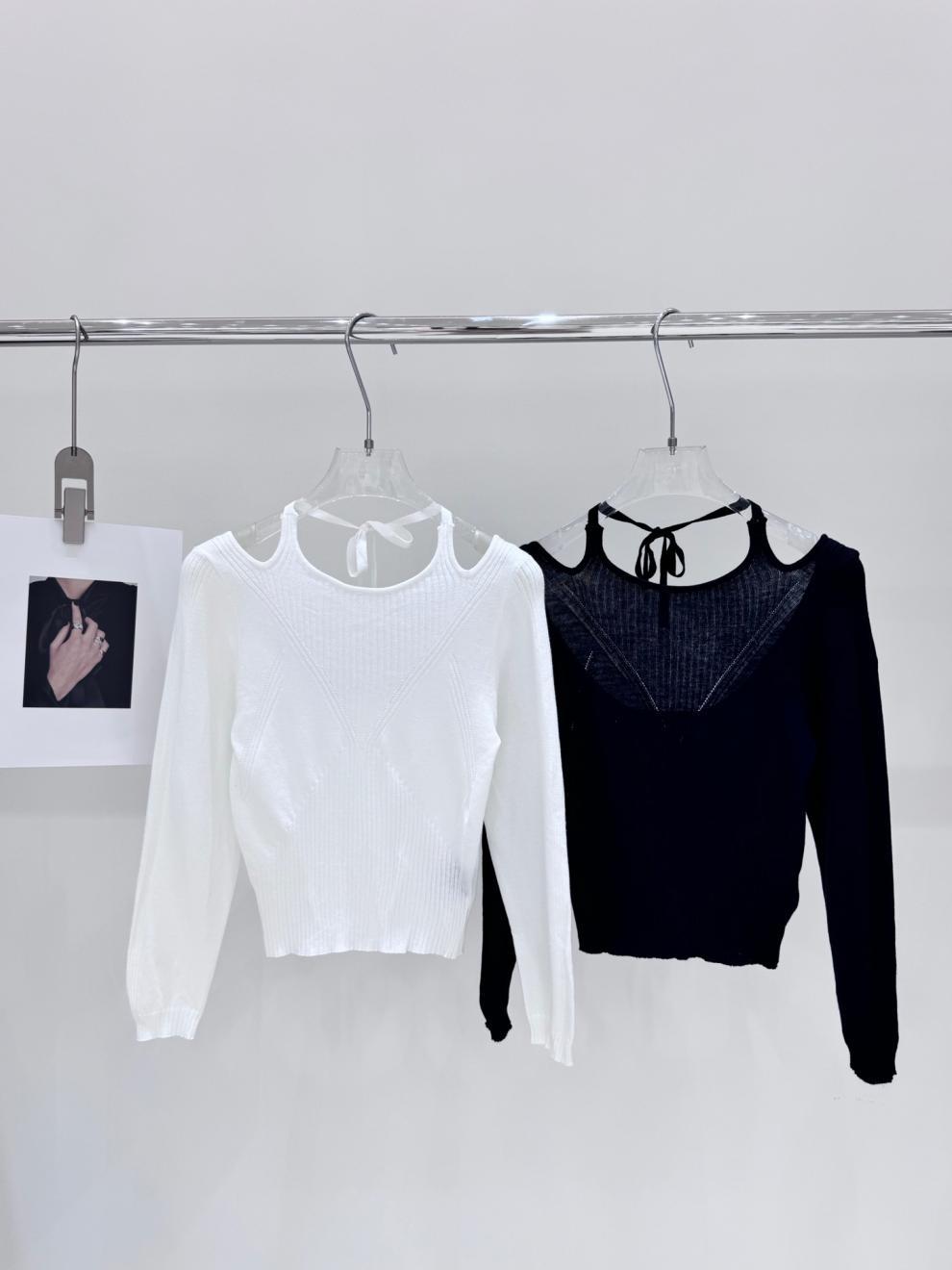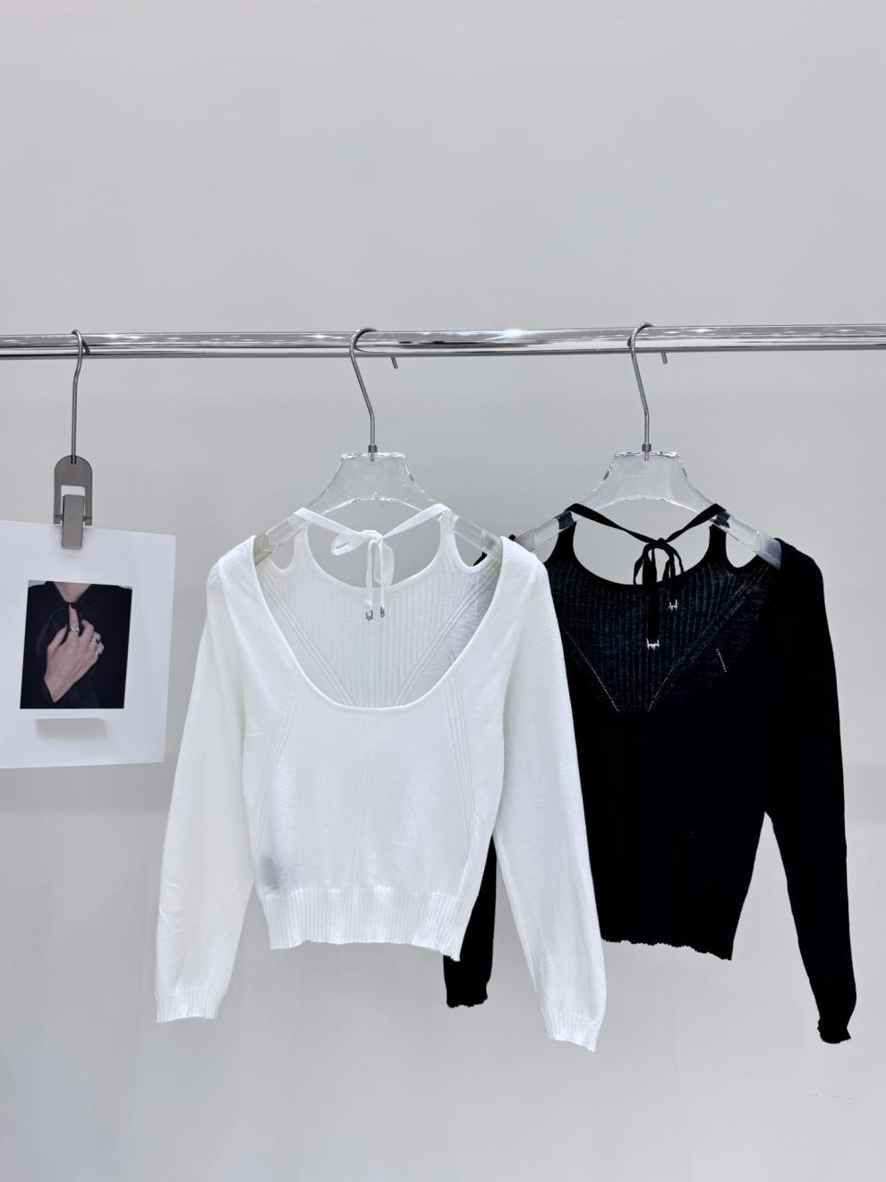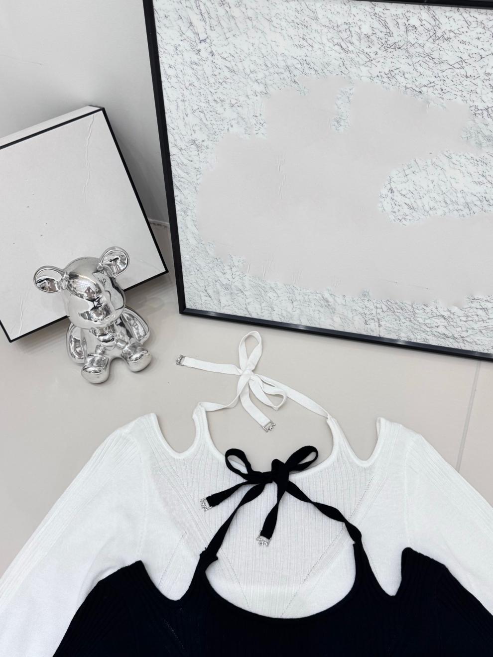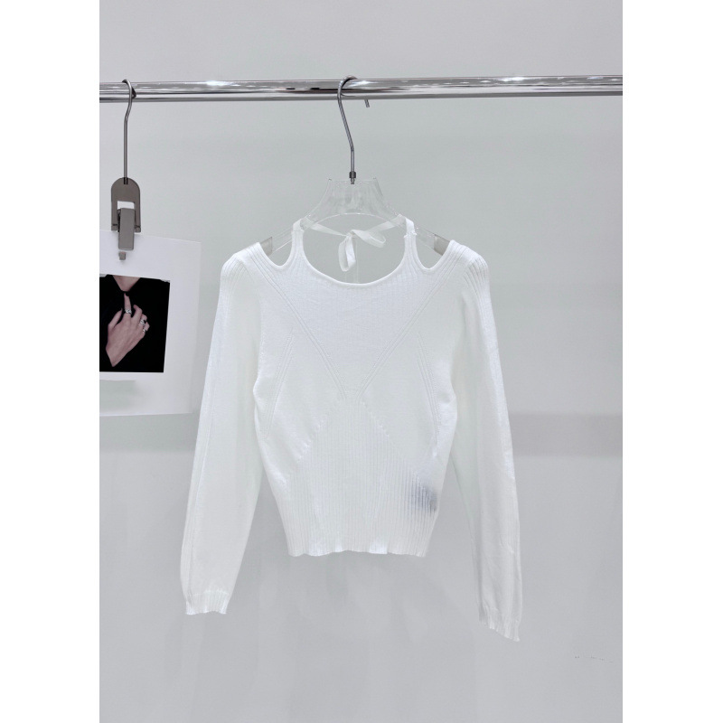 2025년 여름 신작 향기로운 로고 홀터넥 로프 백리스 니트 긴팔 풀오버 루즈하고 활용도가 높은 여성용 탑