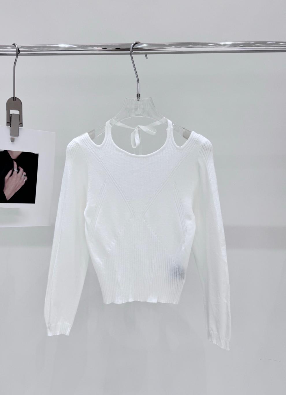 2025년 여름 신작 향기로운 로고 홀터넥 로프 백리스 니트 긴팔 풀오버 루즈하고 활용도가 높은 여성용 탑스토어 가기
