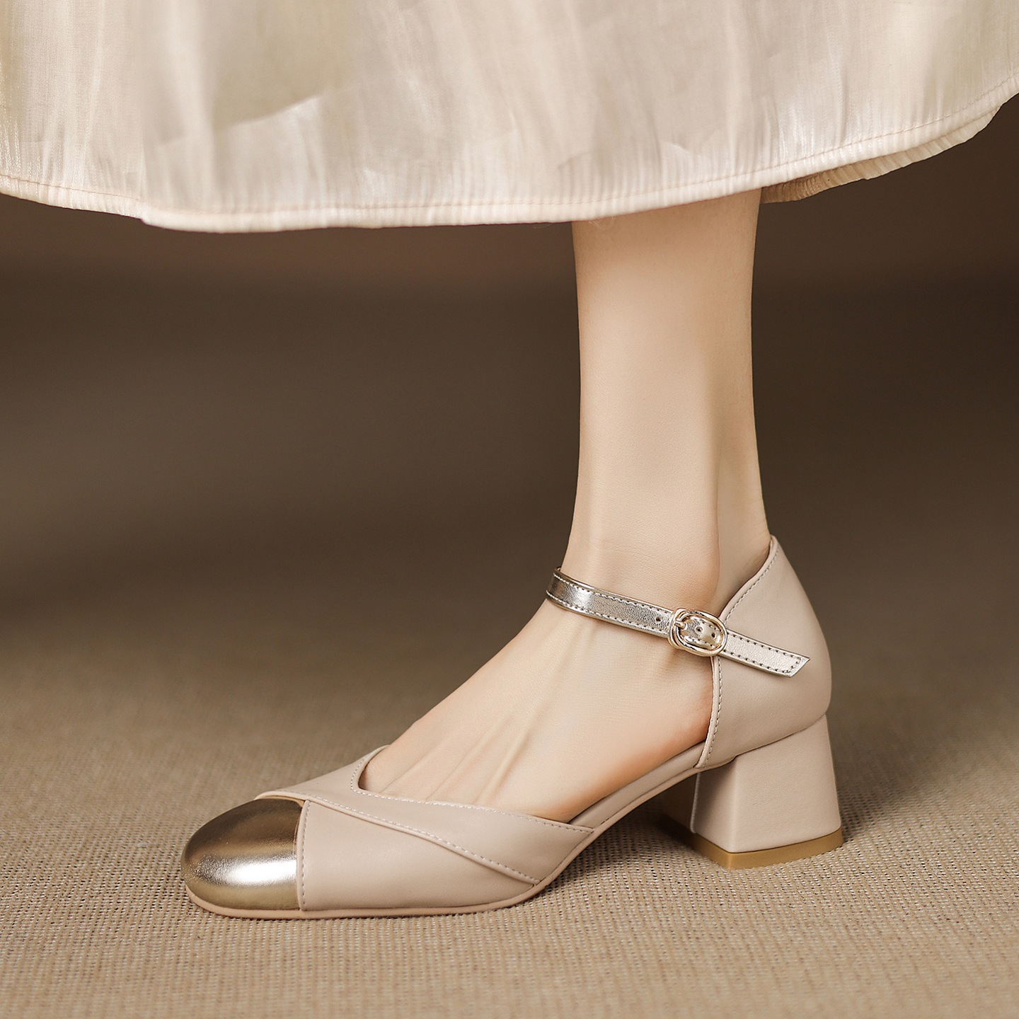 32-43 대형 신발 복고풍 컬러 블록 발가락 두꺼운 굽 샌들 여성 여름 새 스타일 원라인 버클 스트랩 중공 하이힐